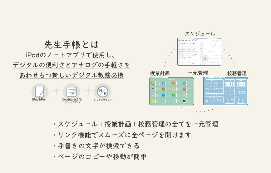 iPadのノートアプリGoodnotesで使用する、デジタル先生手帳。授業計画+校務管理+スケジュールを一元管理!