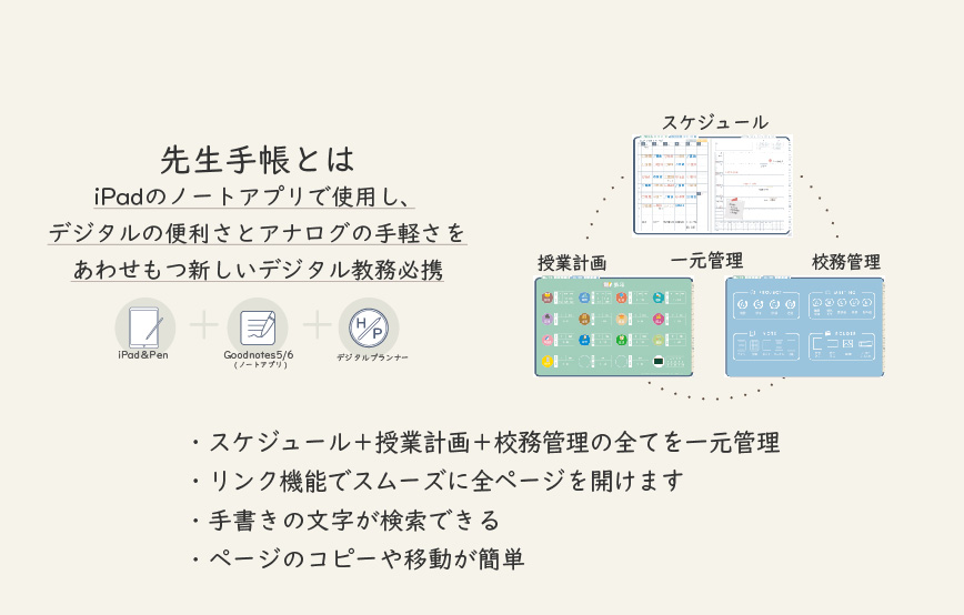 iPadのノートアプリGoodnotesで使用する、デジタル先生手帳。授業計画+校務管理+スケジュールを一元管理!