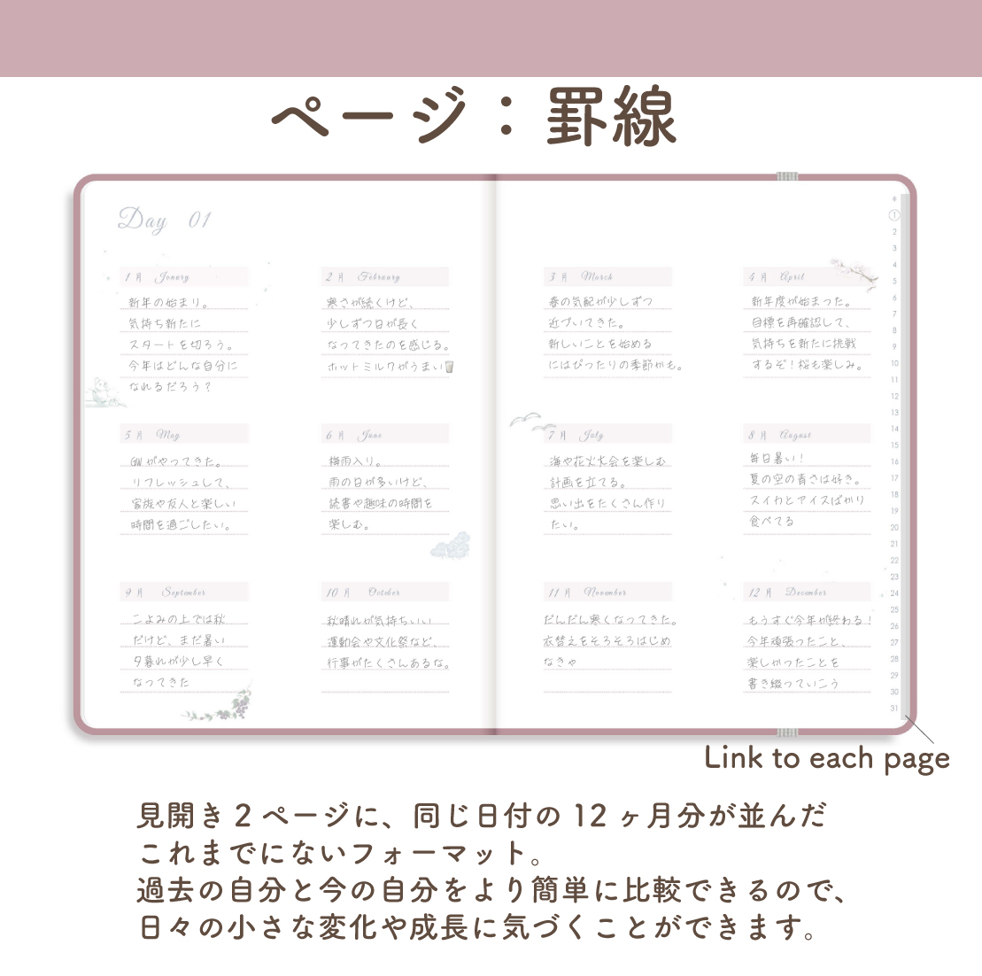 「12ヶ月手帳」[ページ:罫線/カラー:サクラ]