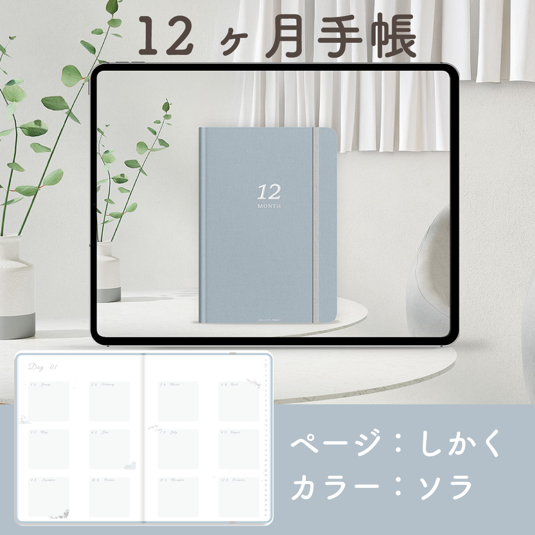「12ヶ月手帳」[ページ:しかく/カラー:ソラ]