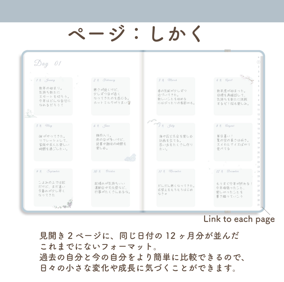1年分の「今日」を並べて見ることで、過去の自分と今の自分をやさしく比べられ、
