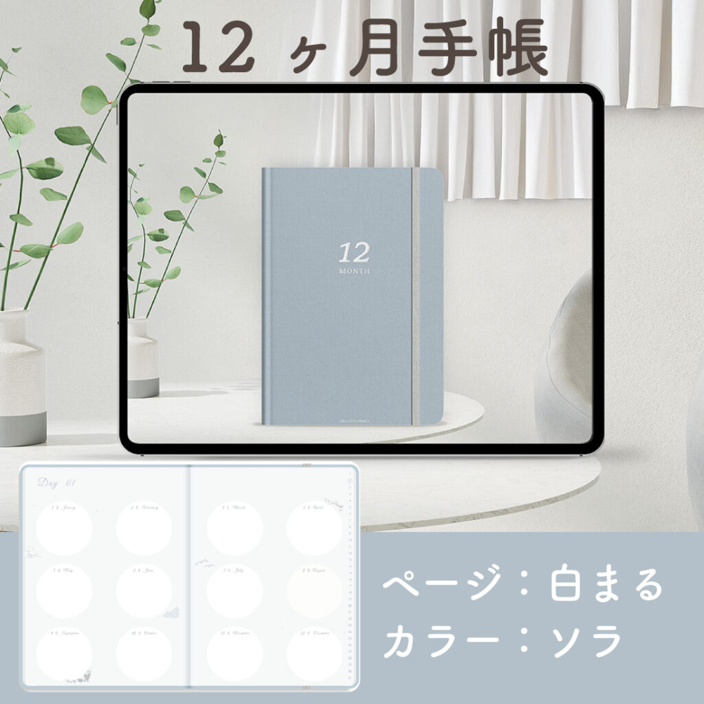 「12ヶ月手帳」[ページ:白まる/カラー:ソラ]