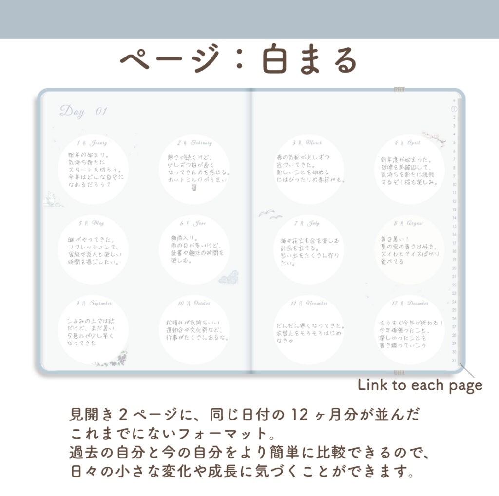 1年分の「今日」を並べて見ることで、過去の自分と今の自分をやさしく比べられ、