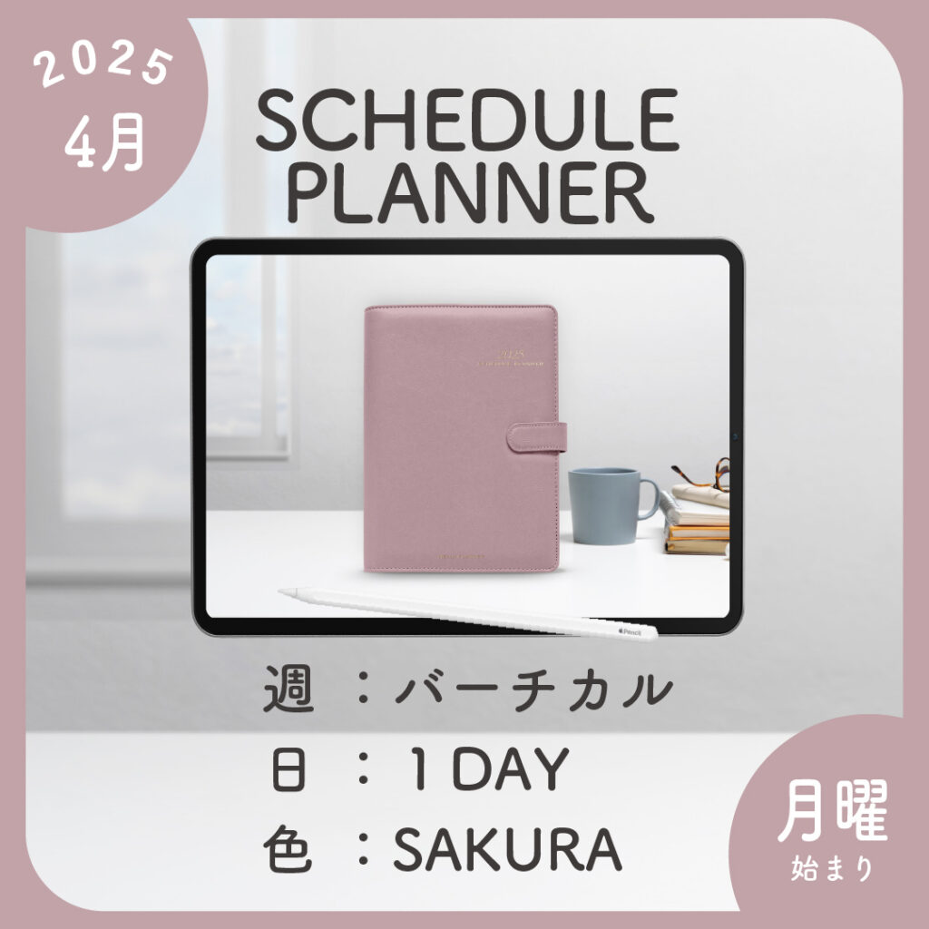 2025年4月始まりスケジュールプランナー[月曜始まり/週:バーチカル/日:1DAY/色:サクラ]