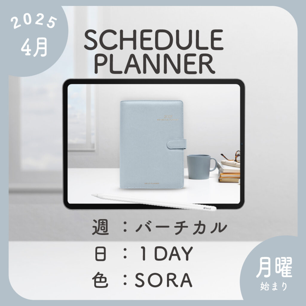 2025年4月始まりスケジュールプランナー[月曜始まり/週:バーチカル/日:1DAY/色:ソラ]