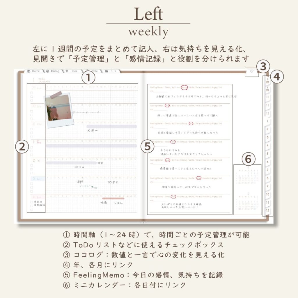 2026年1月始まりDIALOG[月曜始まり/週:レフト/日:1DAY/色:マロン]