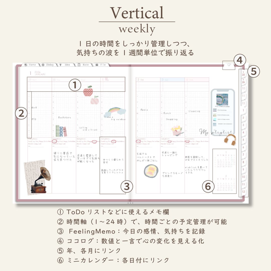 2026年1月始まりDIALOG[月曜始まり/週:バーチカル/日:1DAY/色:サクラ]
