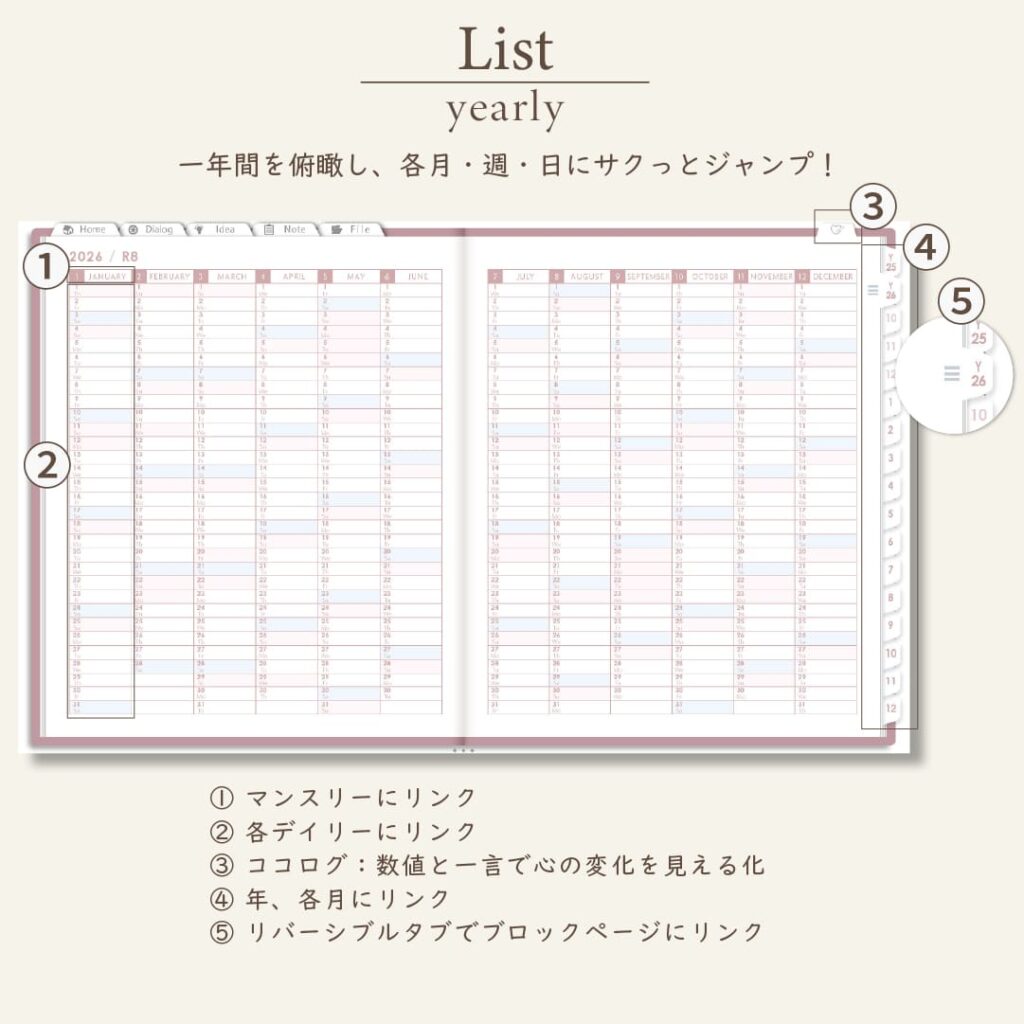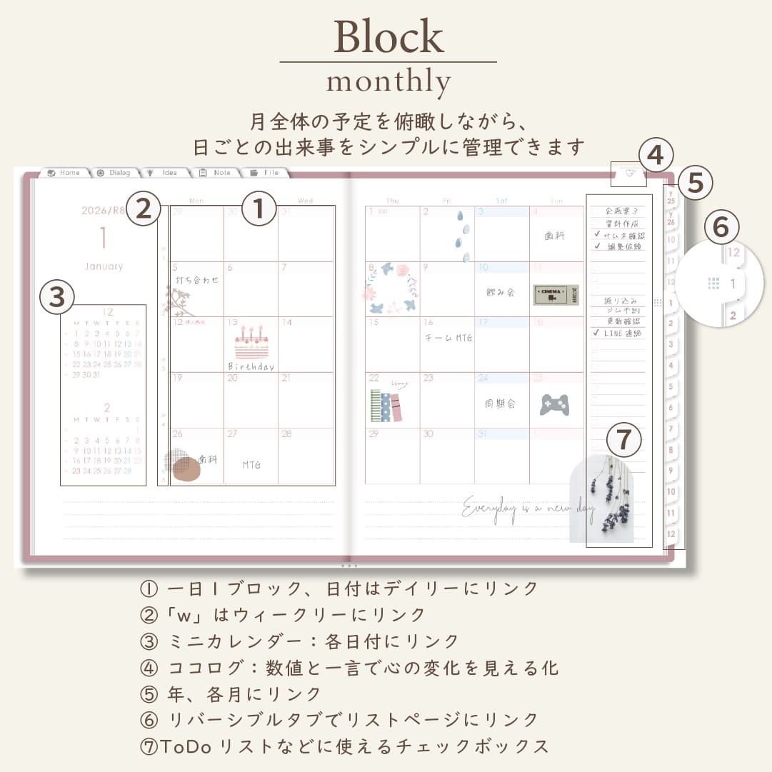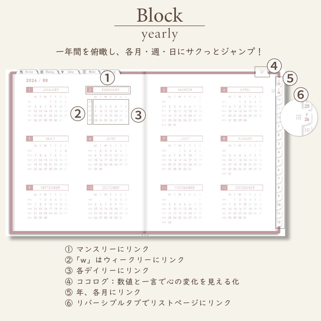 - 年・月ページは「ブロック」と「リスト」がリバーシブル