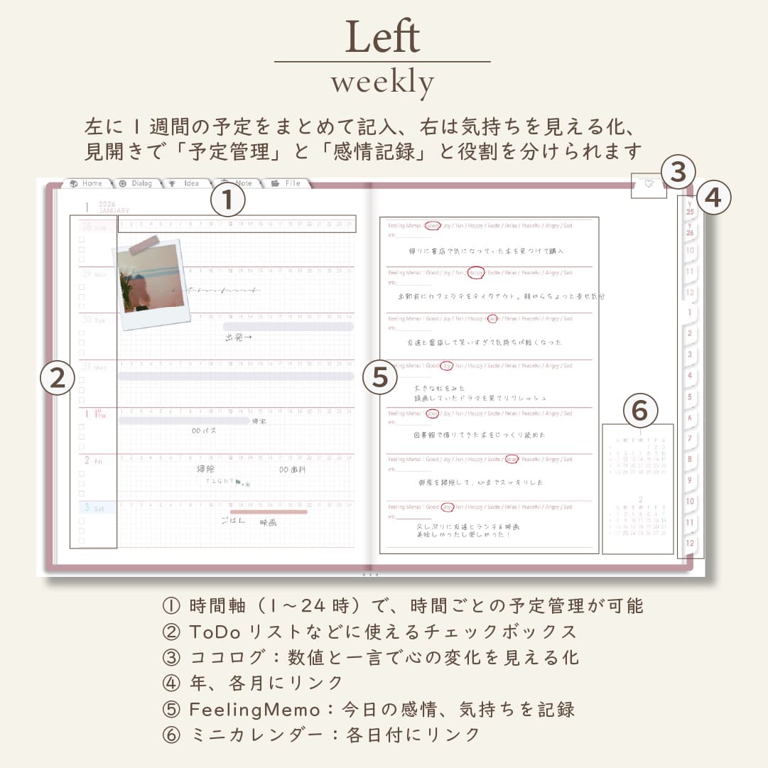 2026年1月始まりDIALOG[日曜始まり/週:レフト/日:1DAY/色:サクラ]
