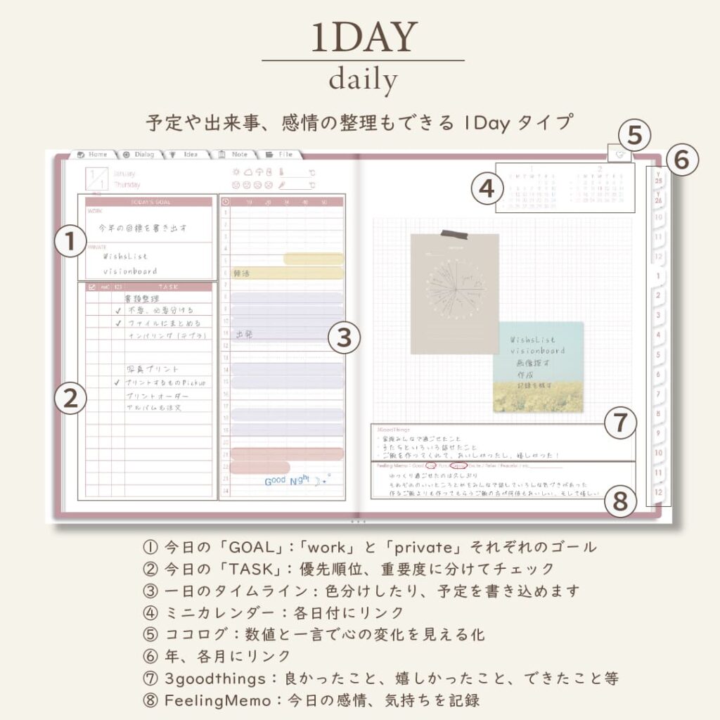 2026年1月始まりDIALOG[日曜始まり/週:バーチカル/日:1DAY/色:サクラ]
