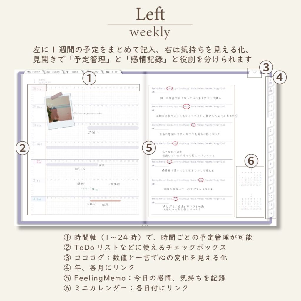 2026年1月始まりDIALOG[日曜始まり/週:レフト/日:1DAY/色:スミレ]