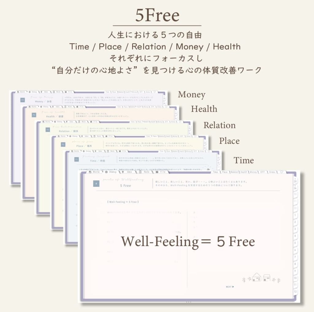 ・5つの自由に向き合う「5Freeワーク」 (Time/Place/Relation/Money/Health)