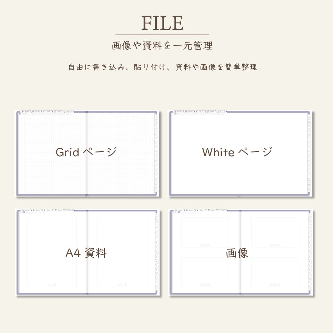 ・写真や資料をまとめられる「ファイルページ」