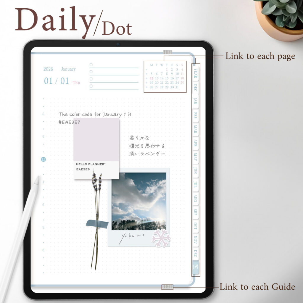 2026年1月始まり「Good Day」縦タイプ[月曜始まり/週:ブロック/日:ドット/色:アクア]