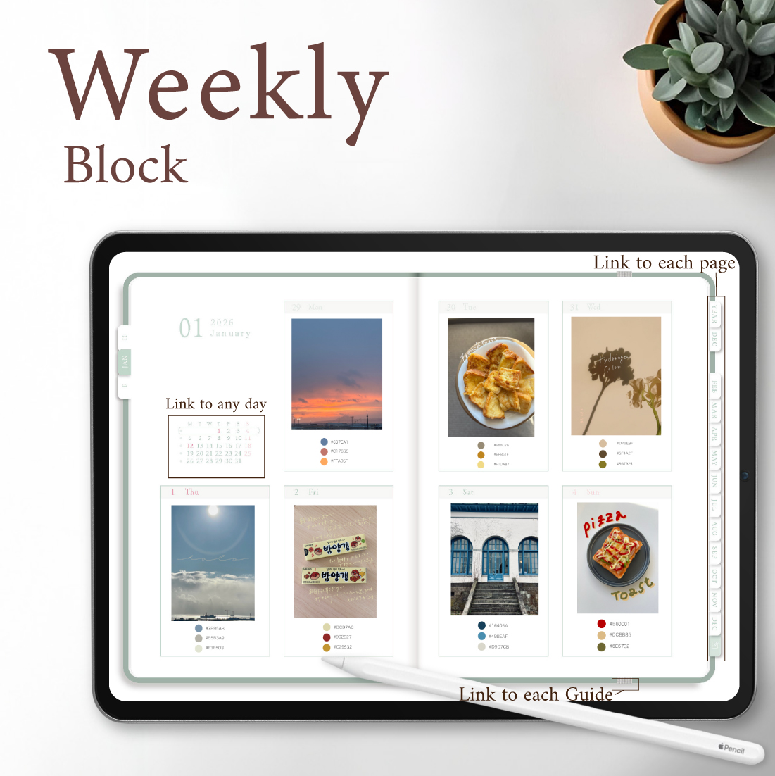 ・日付はDay、曜日はWeekにリンクしているので、どのページからも行き来し、チェックが簡単。