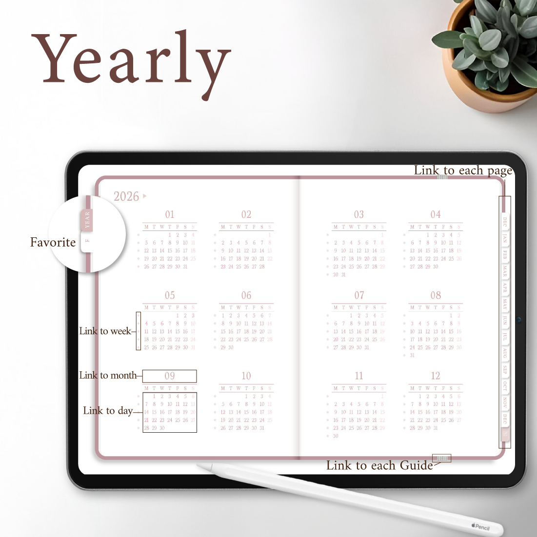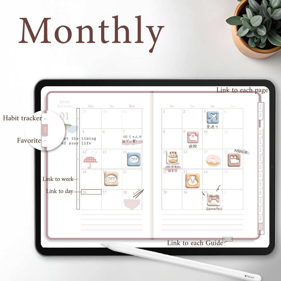 2026年1月始まり「Good Day」横タイプ[月曜始まり/週:バーチカル/日:ドット/色:サクラ]