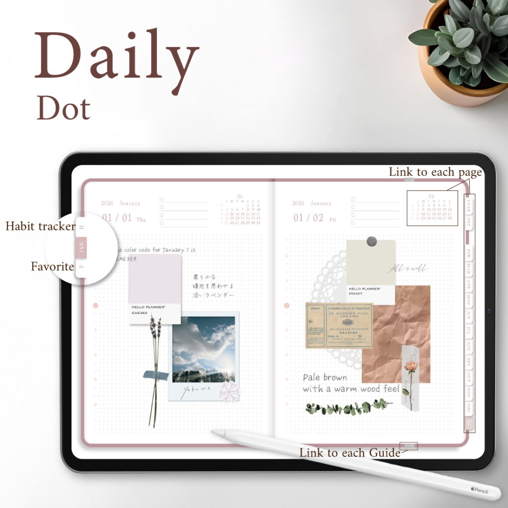 2026年1月始まり「Good Day」横タイプ[日曜始まり/週:バーチカル/日:ドット/色:サクラ]