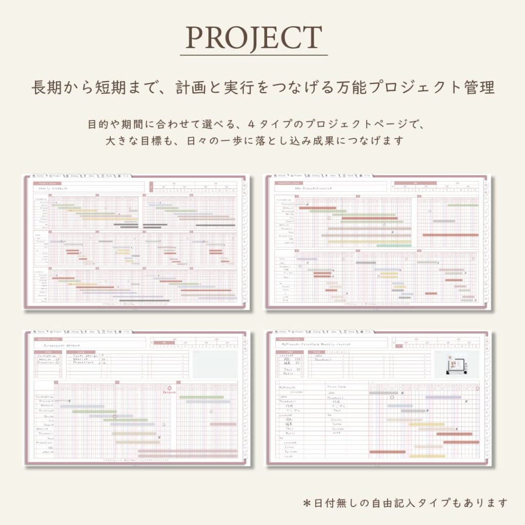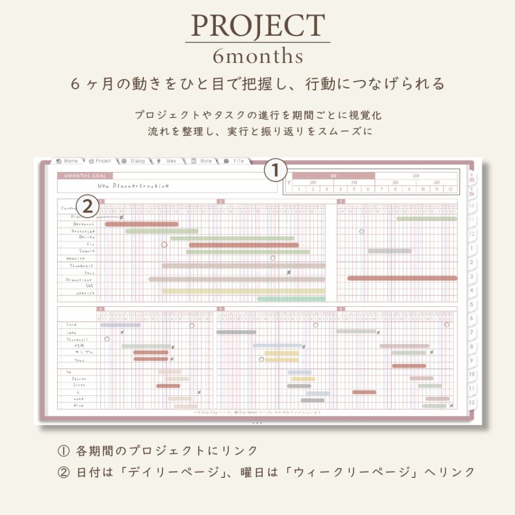 - 1年・半年・3ヶ月・1ヶ月のガントチャートで進捗を見える化