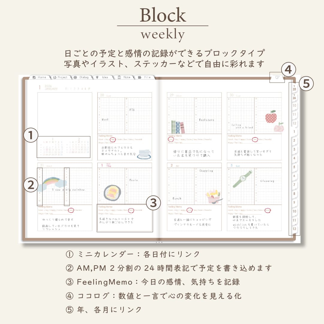 2026年1月始まりPREMIUM PLANNER[日曜始まり/週:ブロック/日:1DAY/色:マロン]