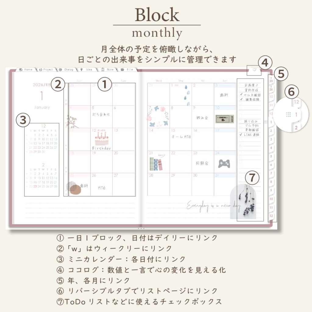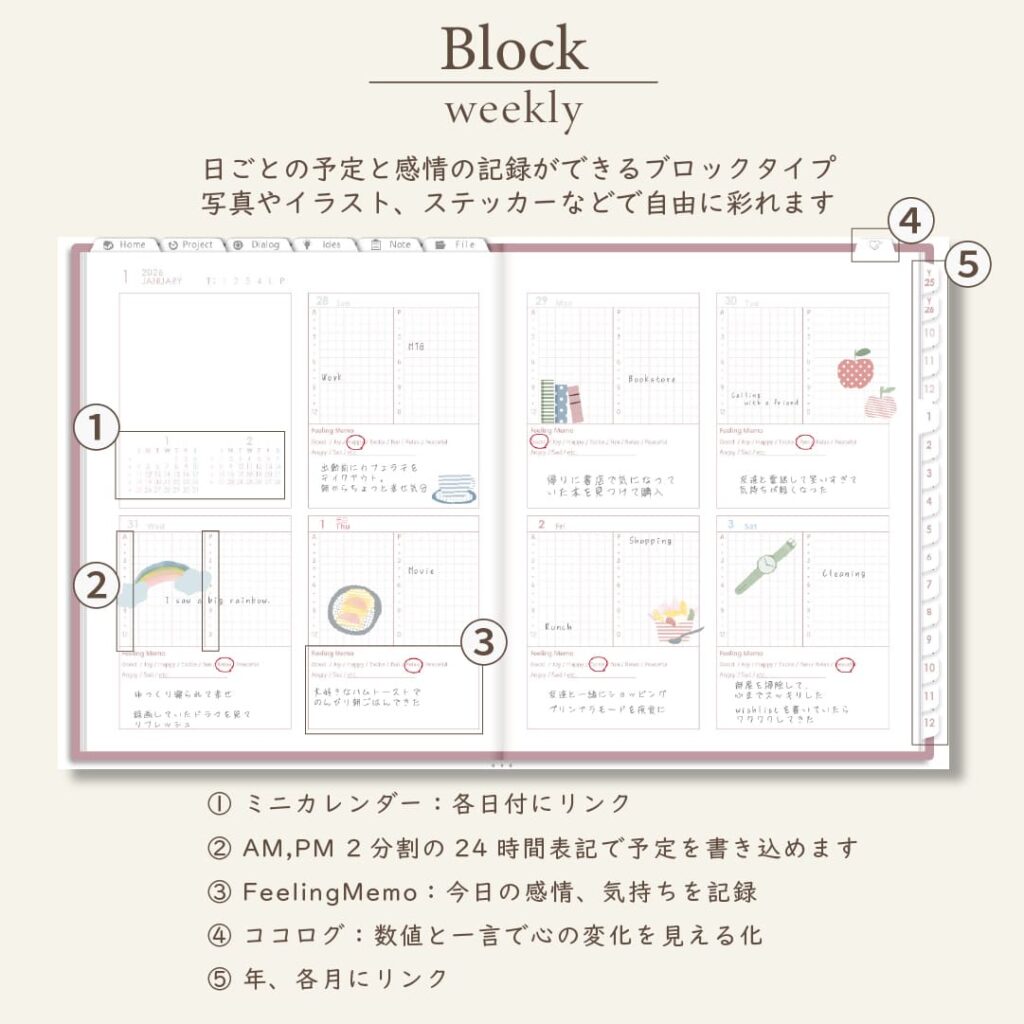 2026年1月始まりPREMIUM PLANNER[日曜始まり/週:ブロック/日:1DAY/色:サクラ]