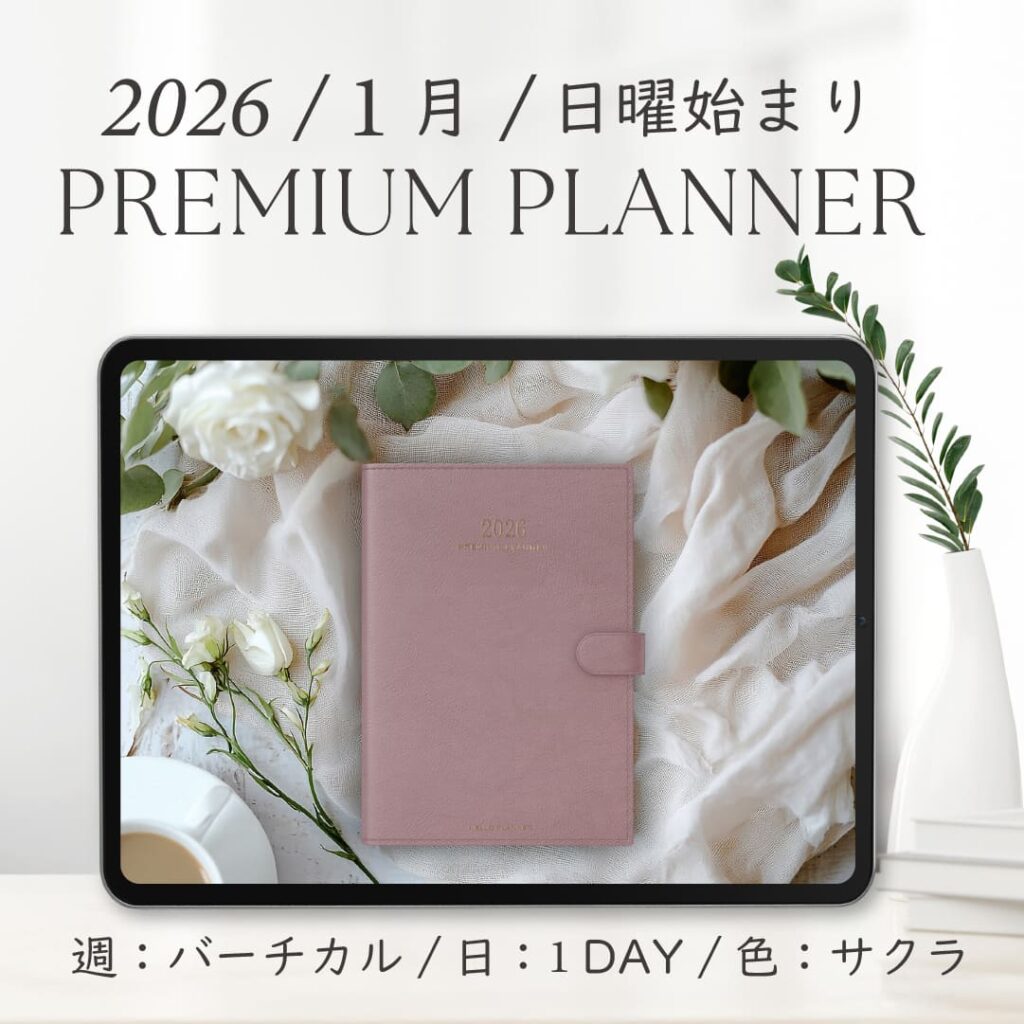 2026年1月始まりPREMIUM PLANNER[日曜始まり/週:バーチカル/日:1DAY/色:サクラ]