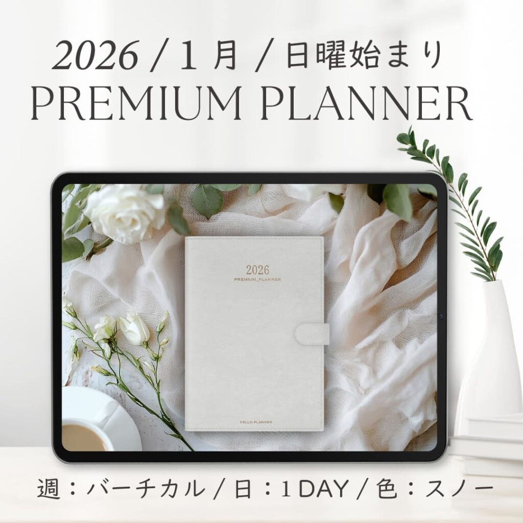 2026年1月始まりPREMIUM PLANNER[日曜始まり/週:バーチカル/日:1DAY/色:スノー]