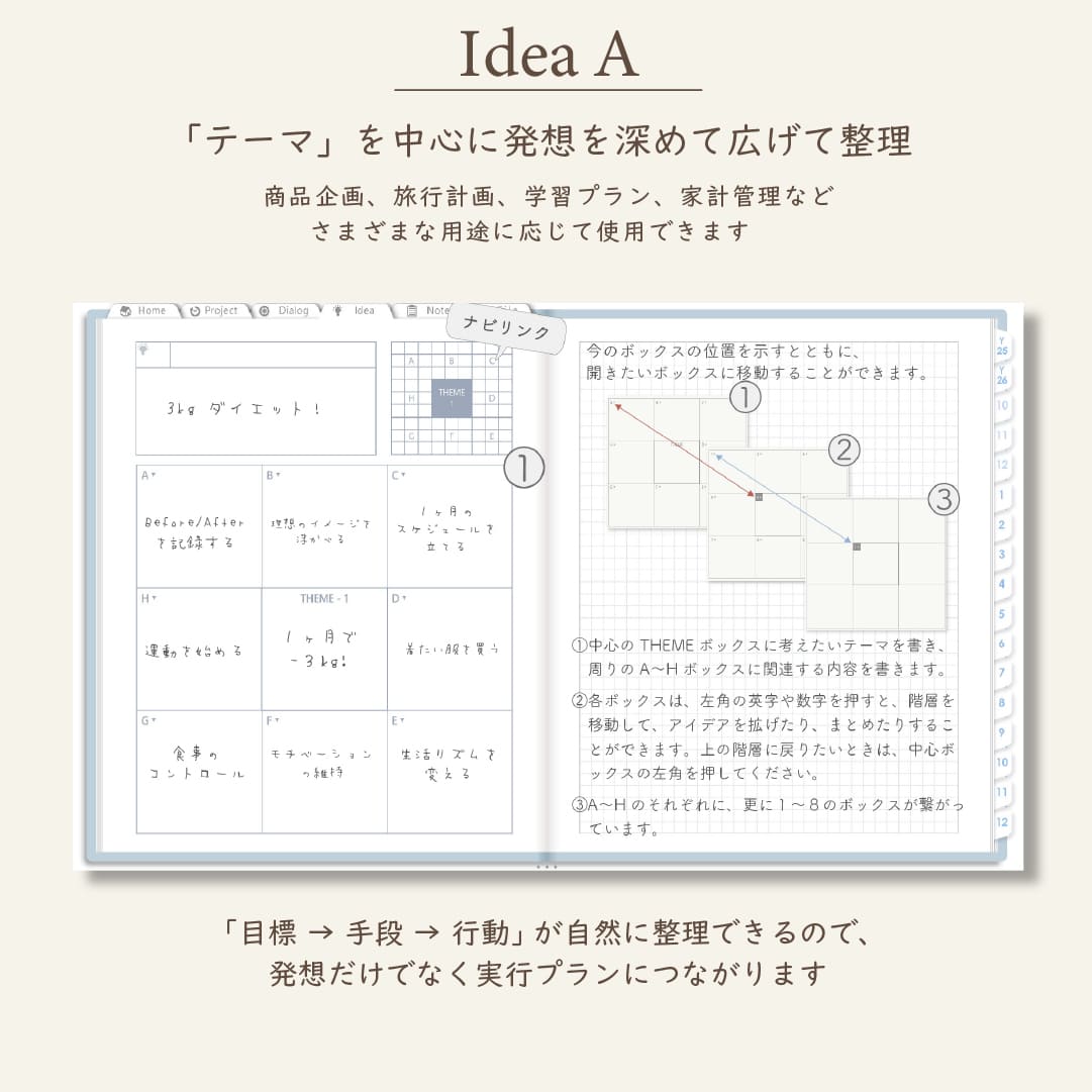 - アイデアを整理できるプランニングシート