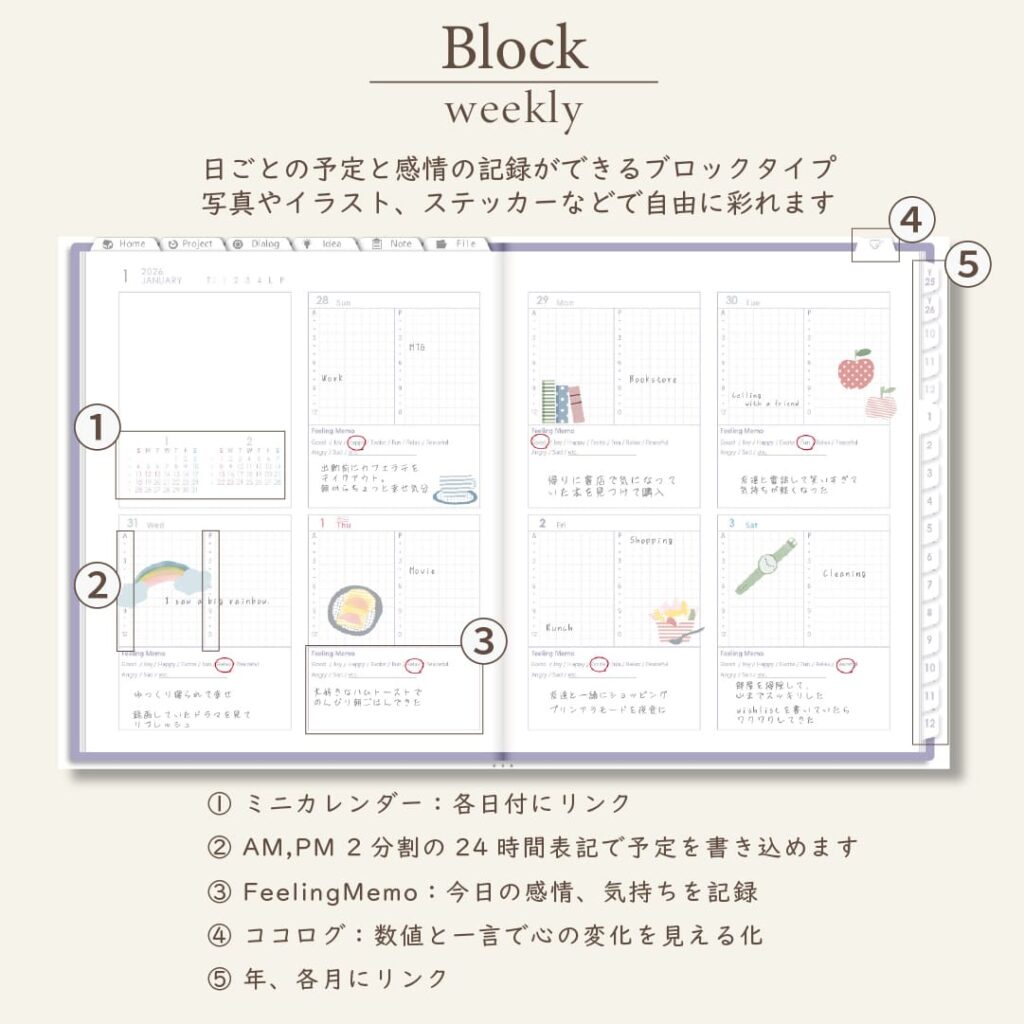 2026年1月始まりPREMIUM PLANNER[日曜始まり/週:ブロック/日:1DAY/色:スミレ]