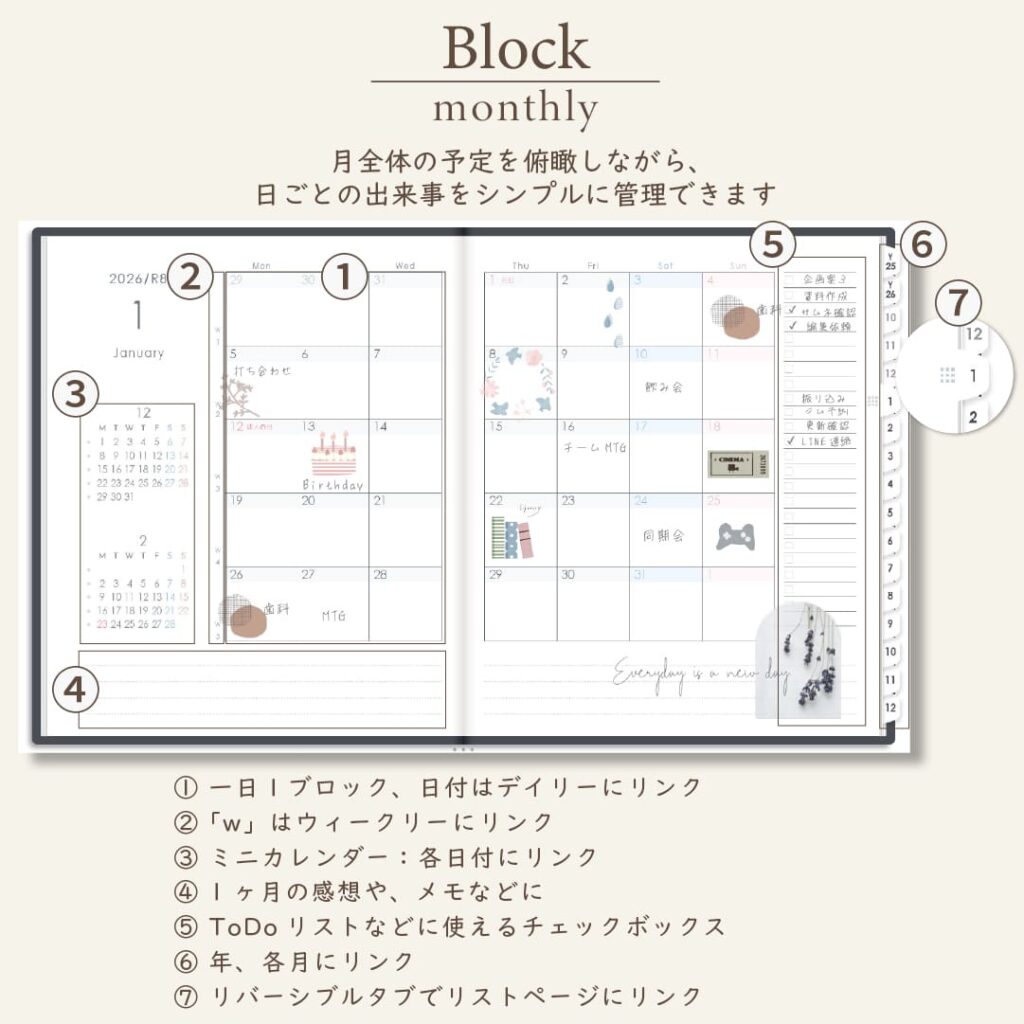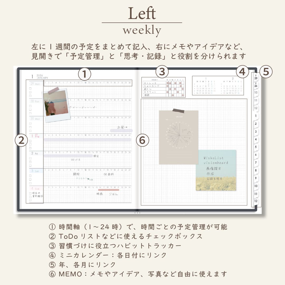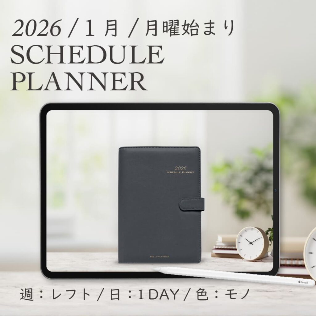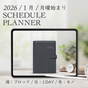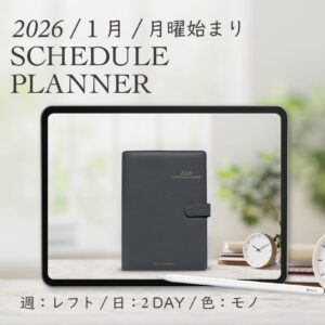 2026年1月始まりスケジュールプランナー[月曜始まり/週:レフト/日:1DAY/色:モノ]