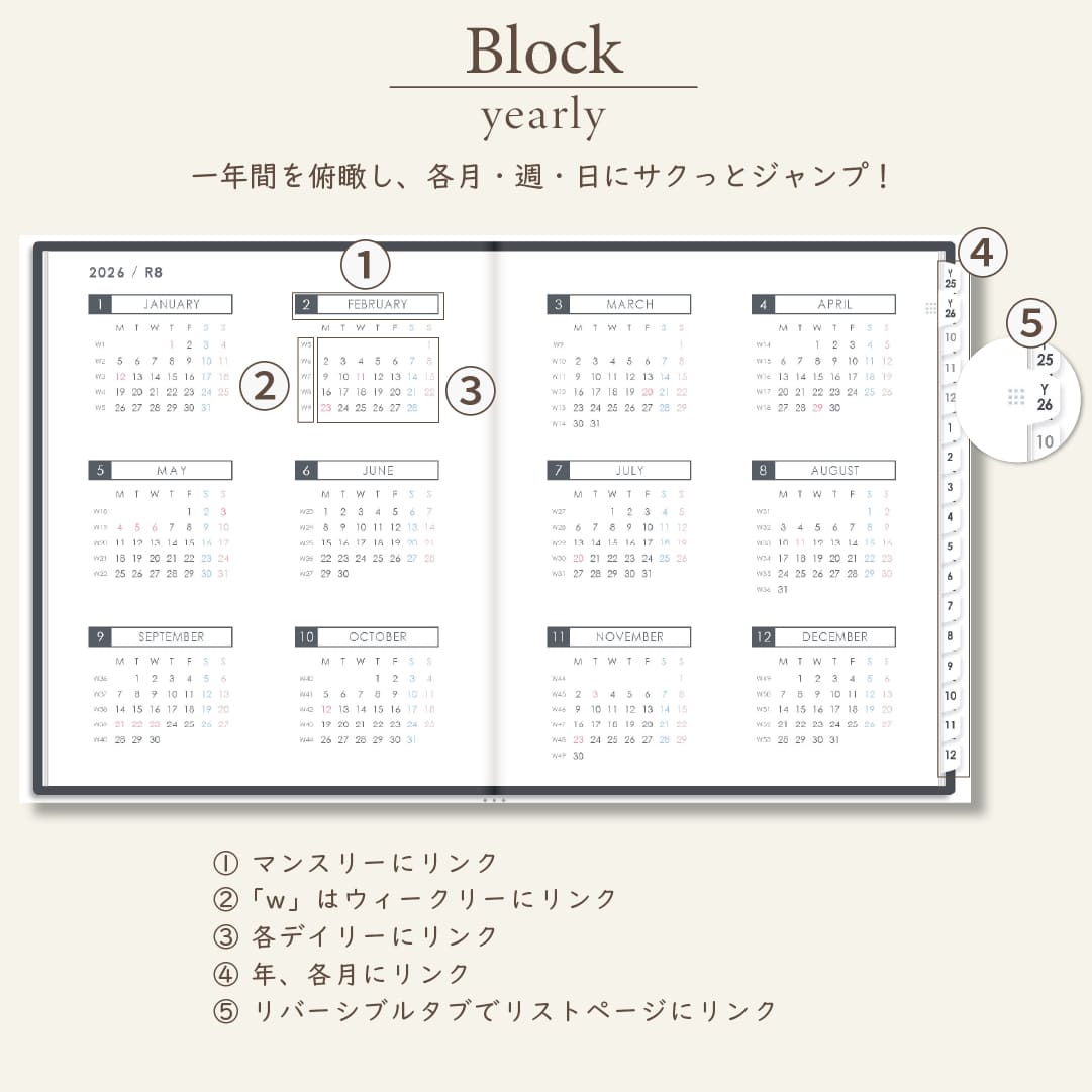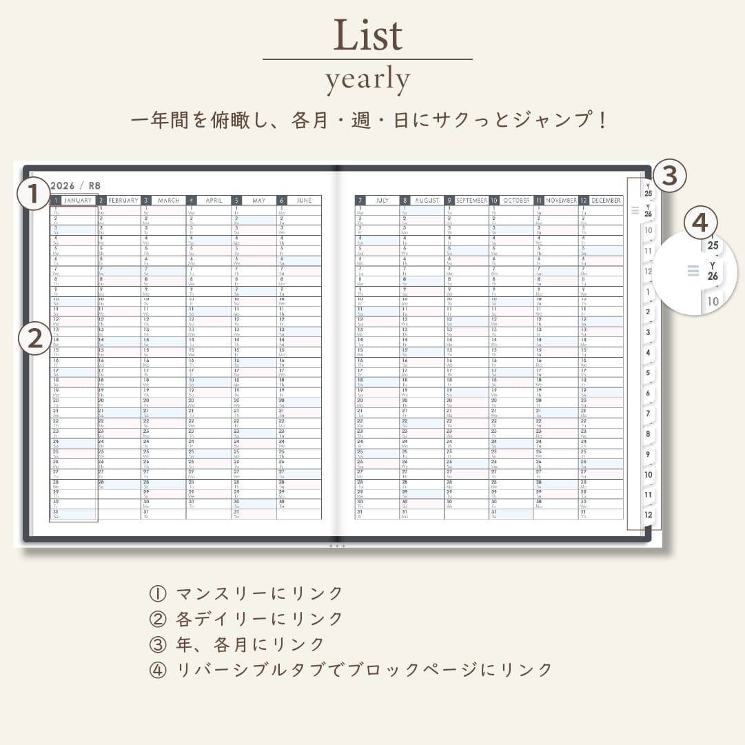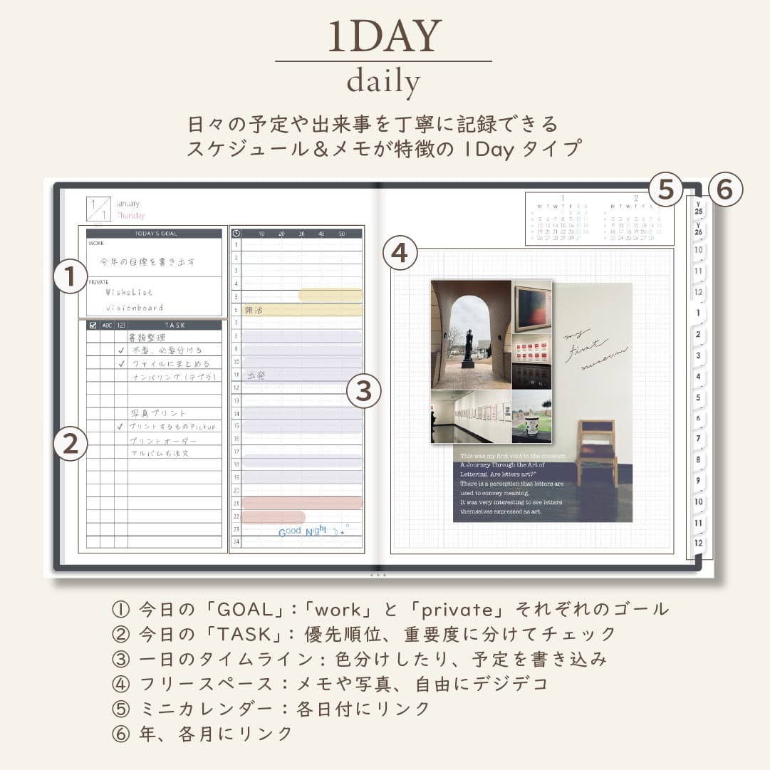 2026年1月始まりスケジュールプランナー[月曜始まり/週:レフト/日:1DAY/色:モノ]