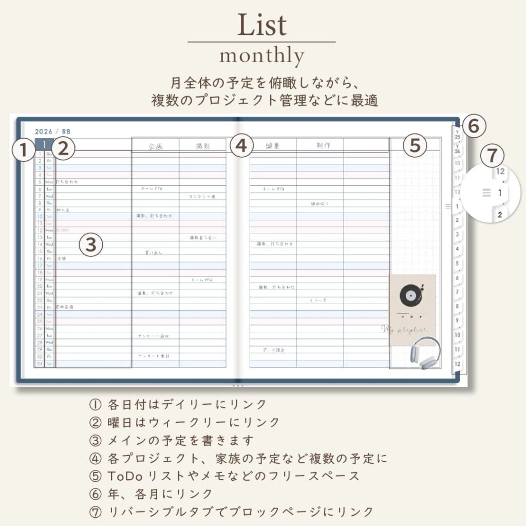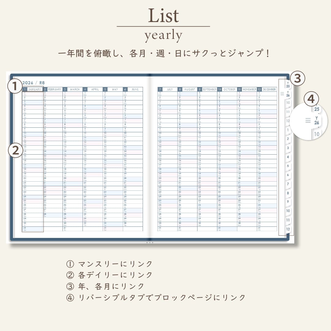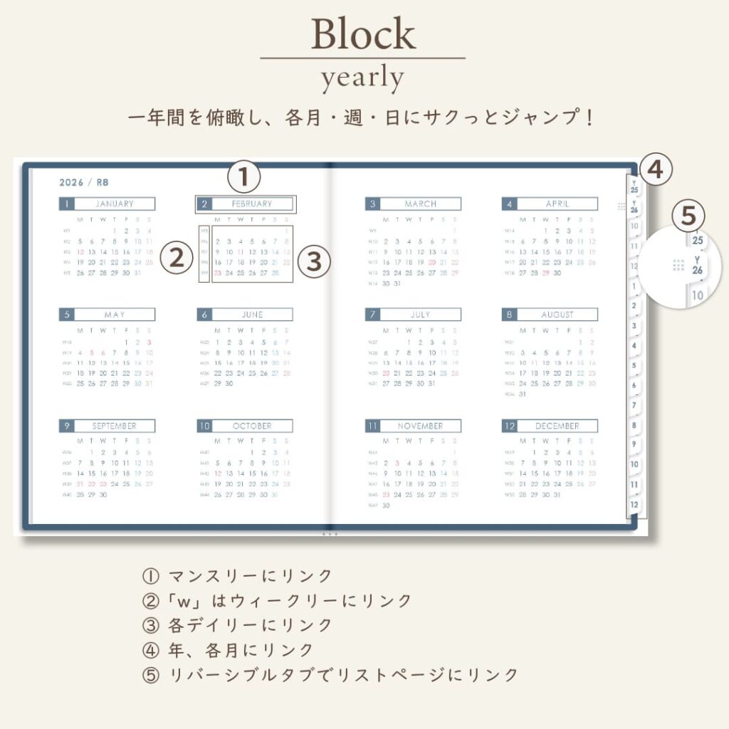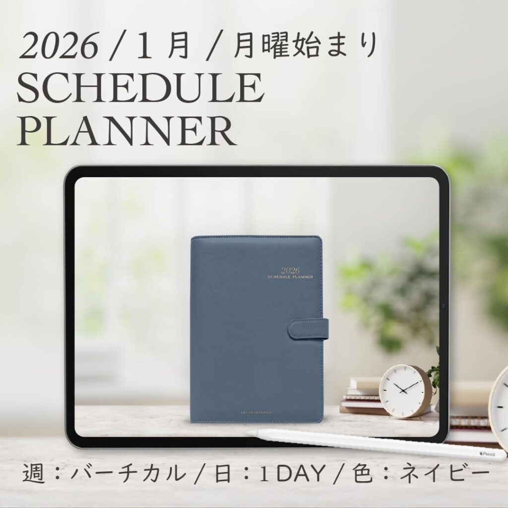 2026年1月始まりスケジュールプランナー[月曜始まり/週:バーチカル/日:1DAY/色:ネイビー]