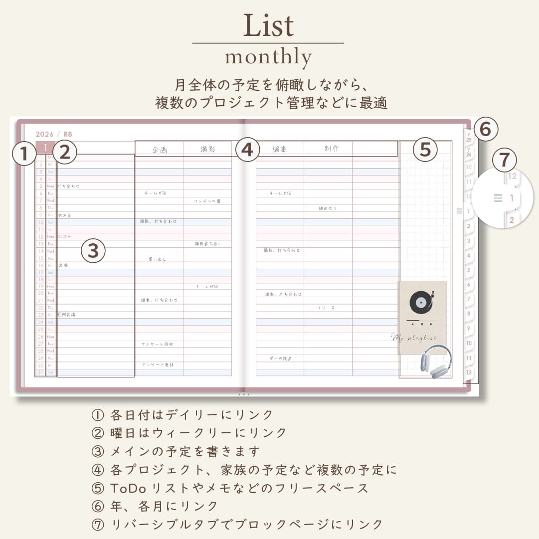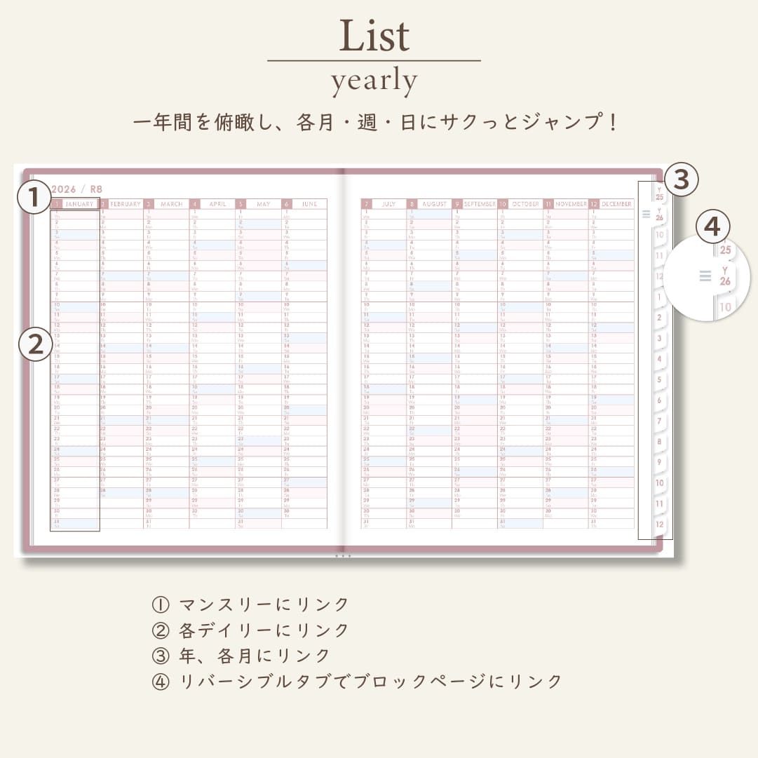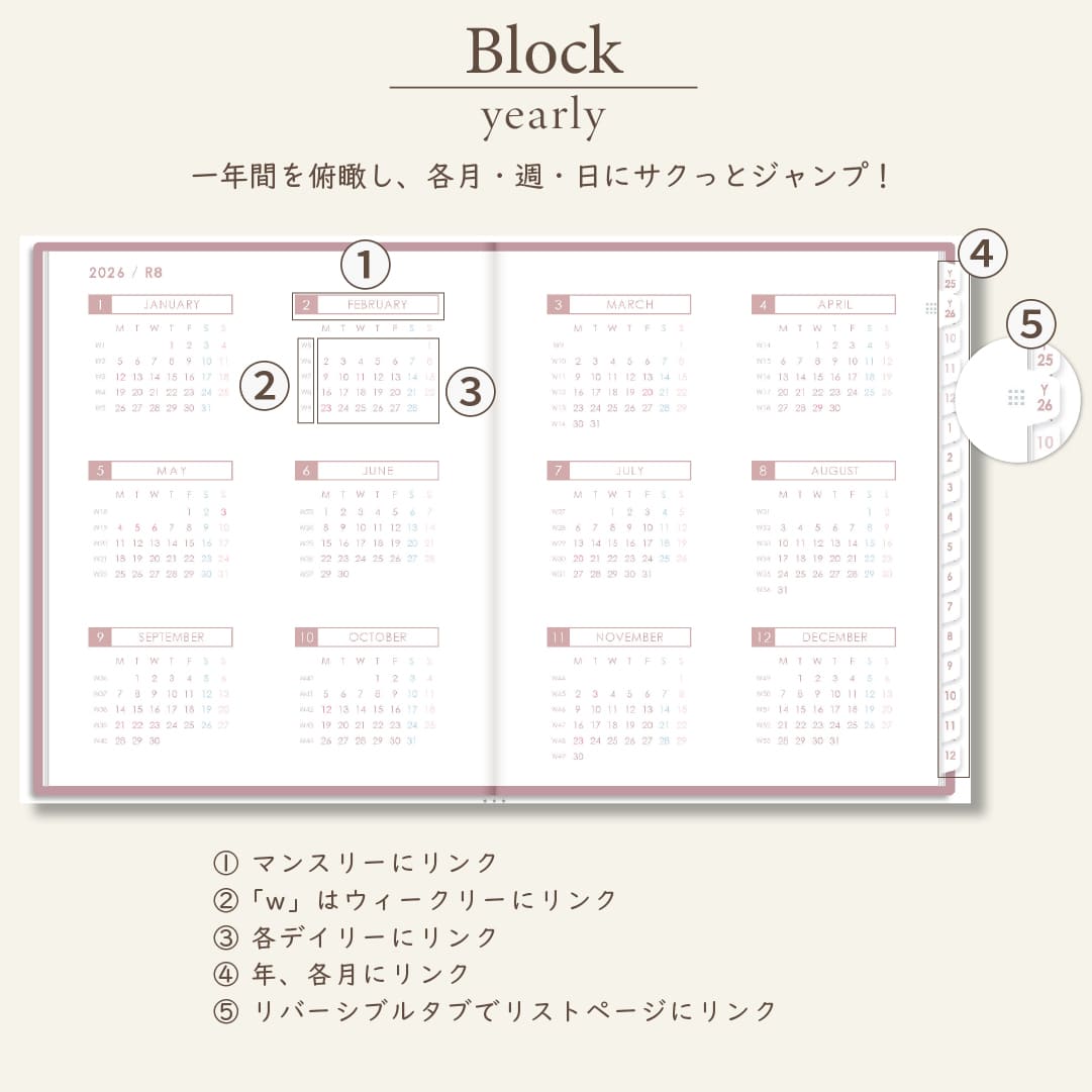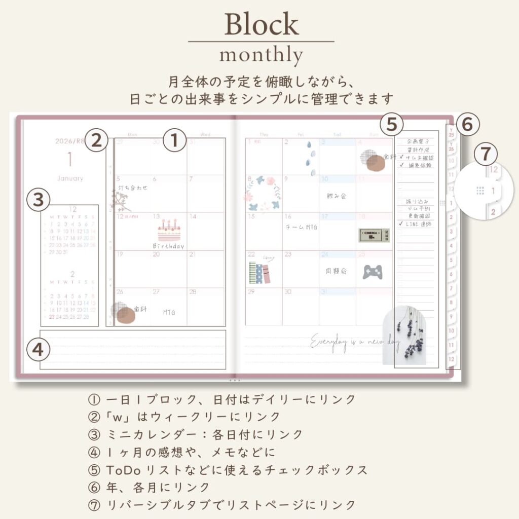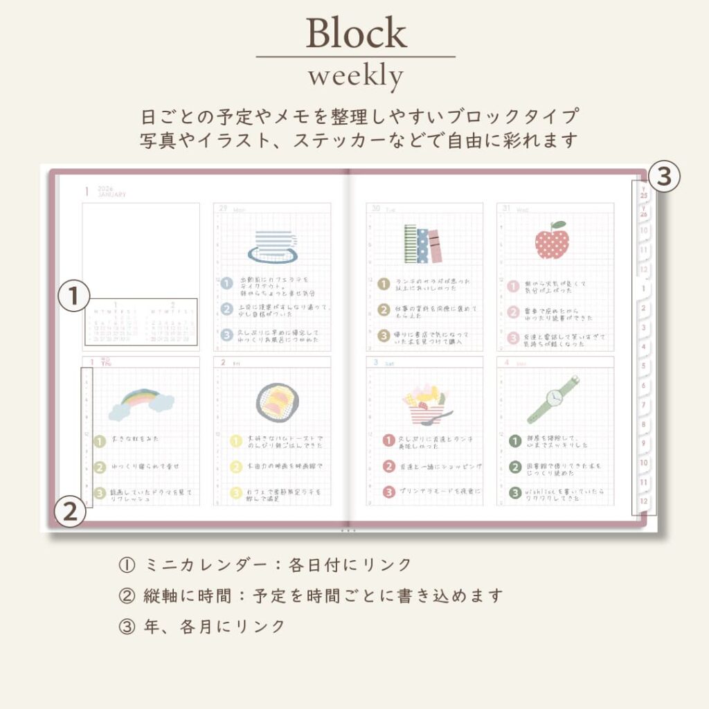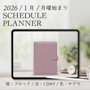 2026年1月始まりスケジュールプランナー[月曜始まり/週:ブロック/日:2DAY/色:サクラ]