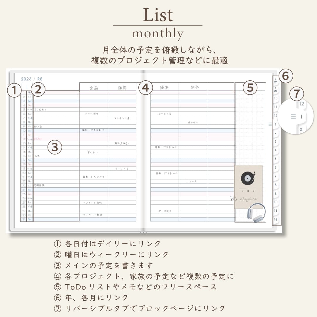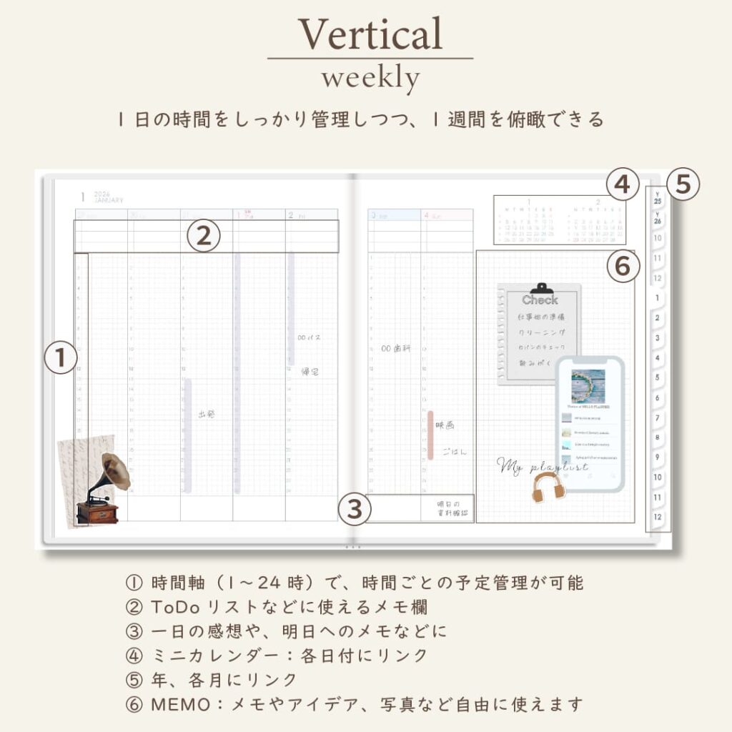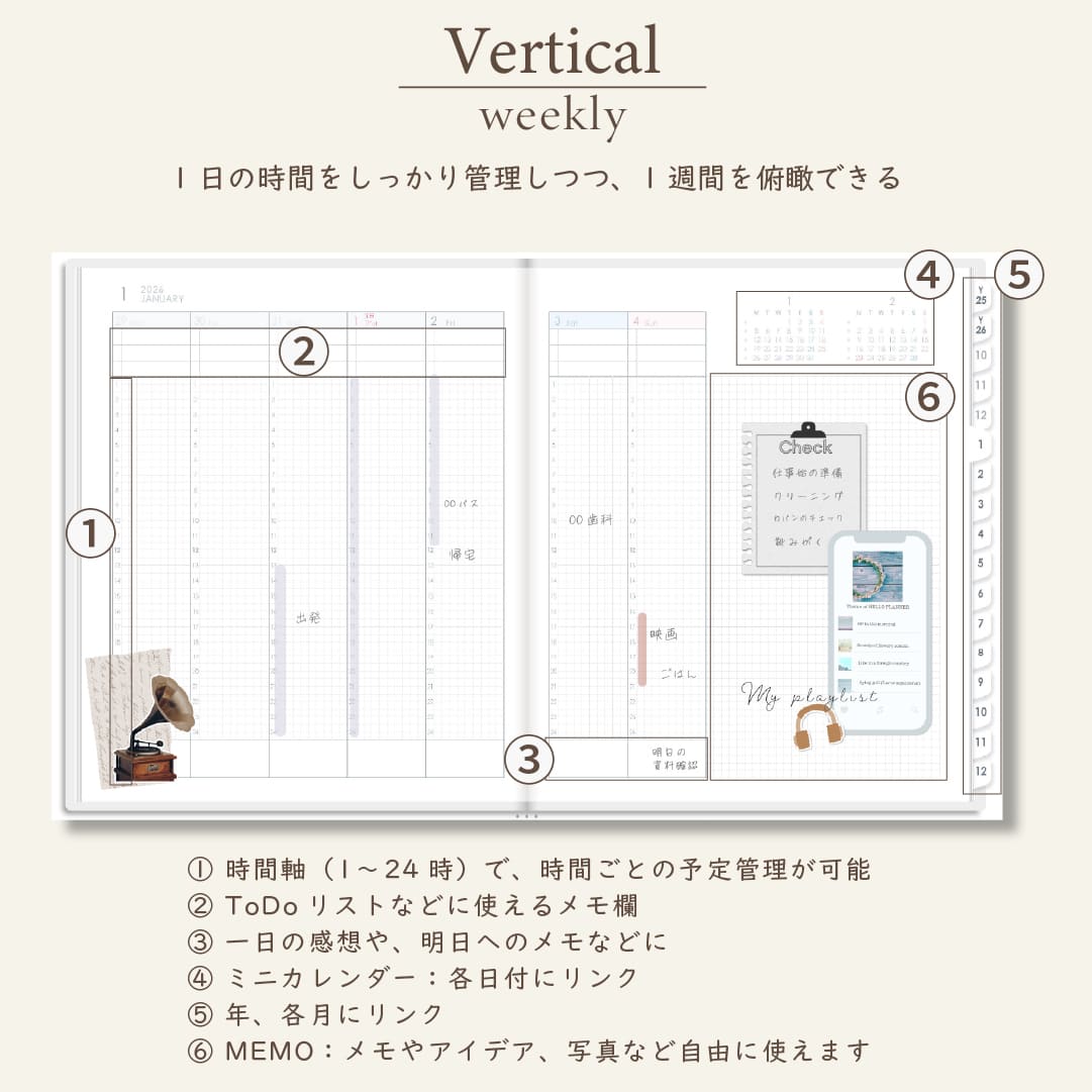 2026年1月始まりスケジュールプランナー[月曜始まり/週:バーチカル/日:1DAY/色:スノー]