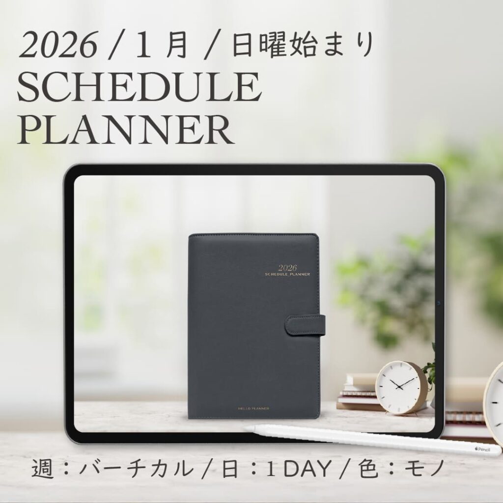 2026年1月始まりスケジュールプランナー[日曜始まり/週:バーチカル/日:1DAY/色:モノ]