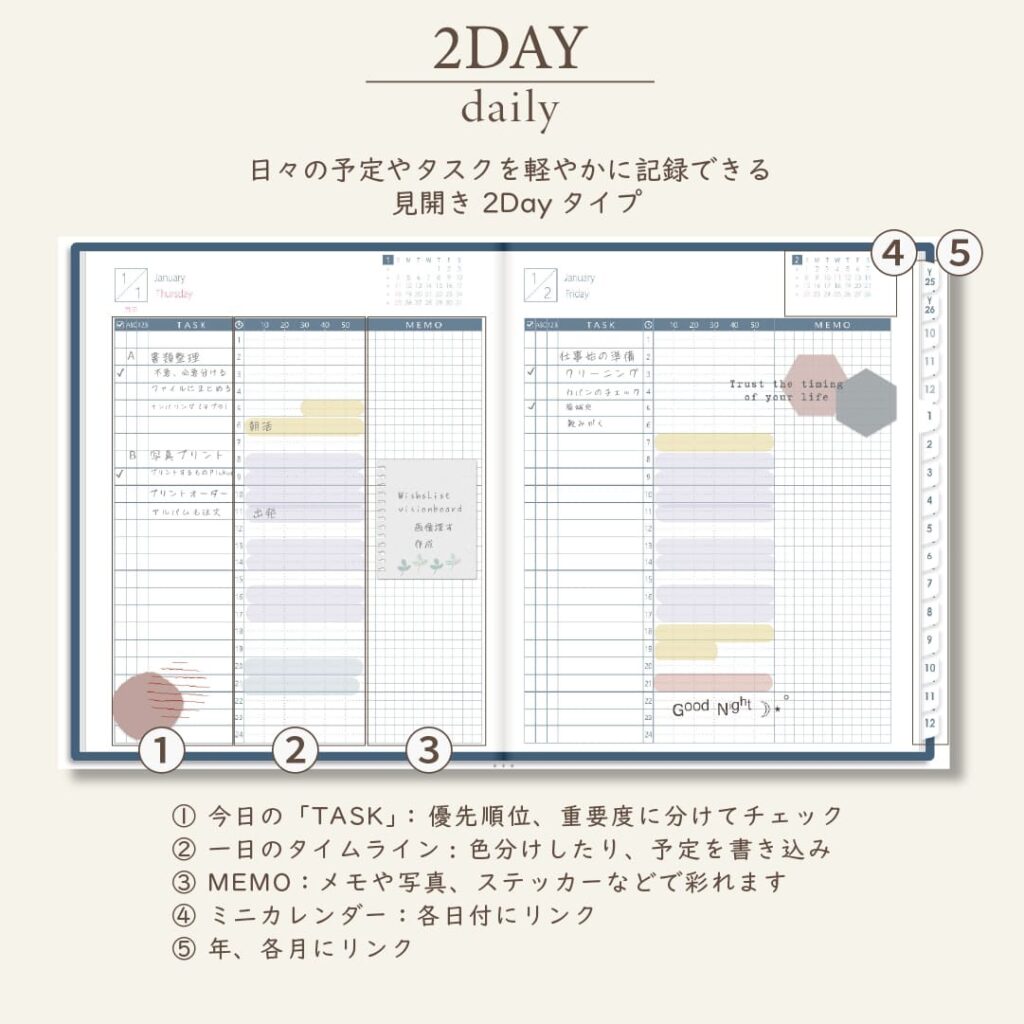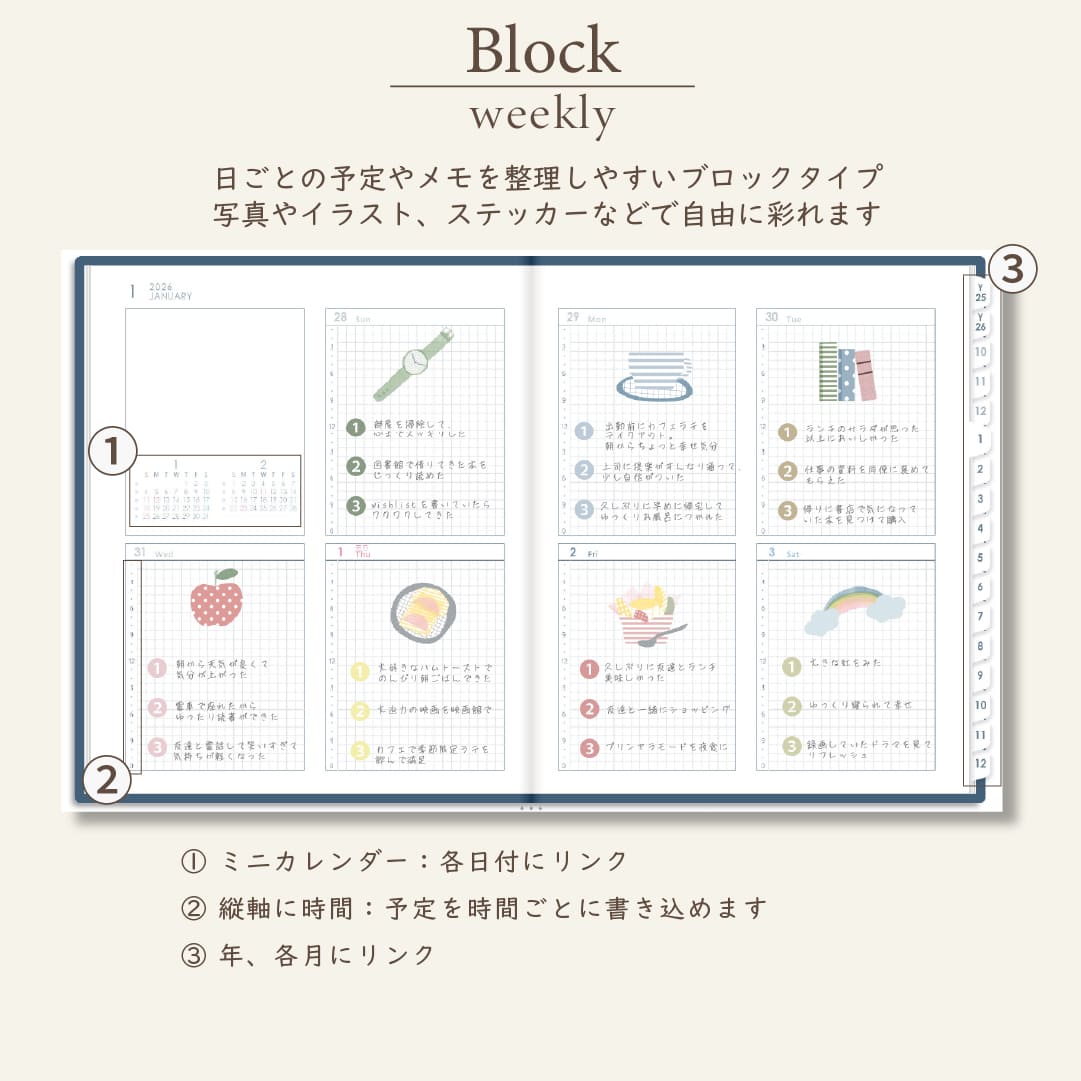 2026年1月始まりスケジュールプランナー[日曜始まり/週:ブロック/日:2DAY/色:ネイビー]