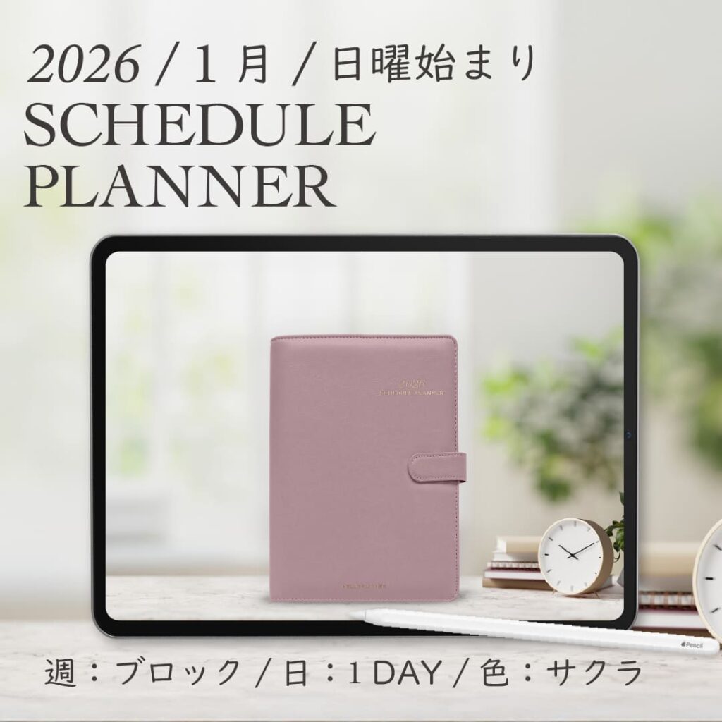 2026年1月始まりスケジュールプランナー[日曜始まり/週:ブロック/日:1DAY/色:サクラ]