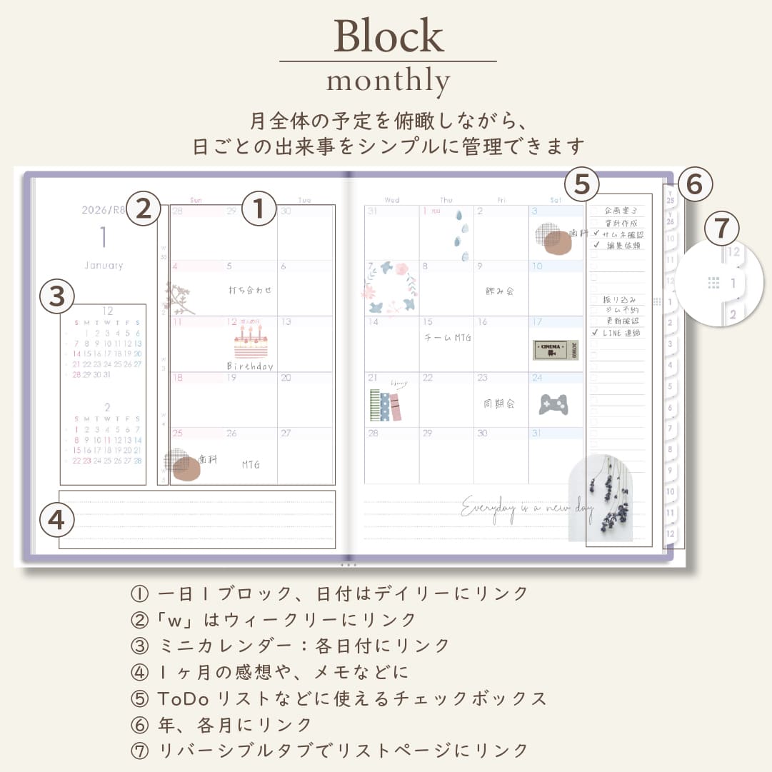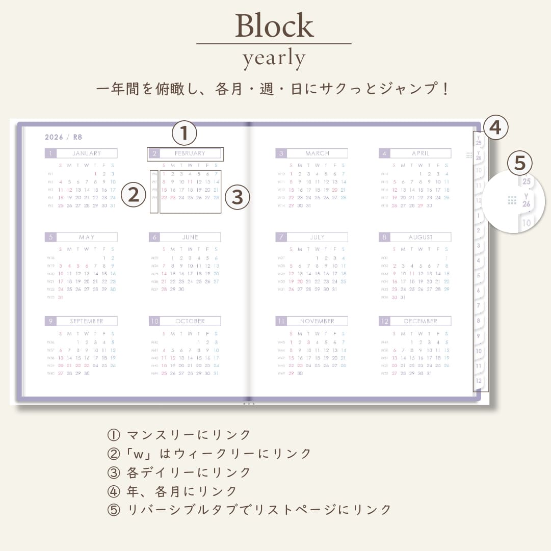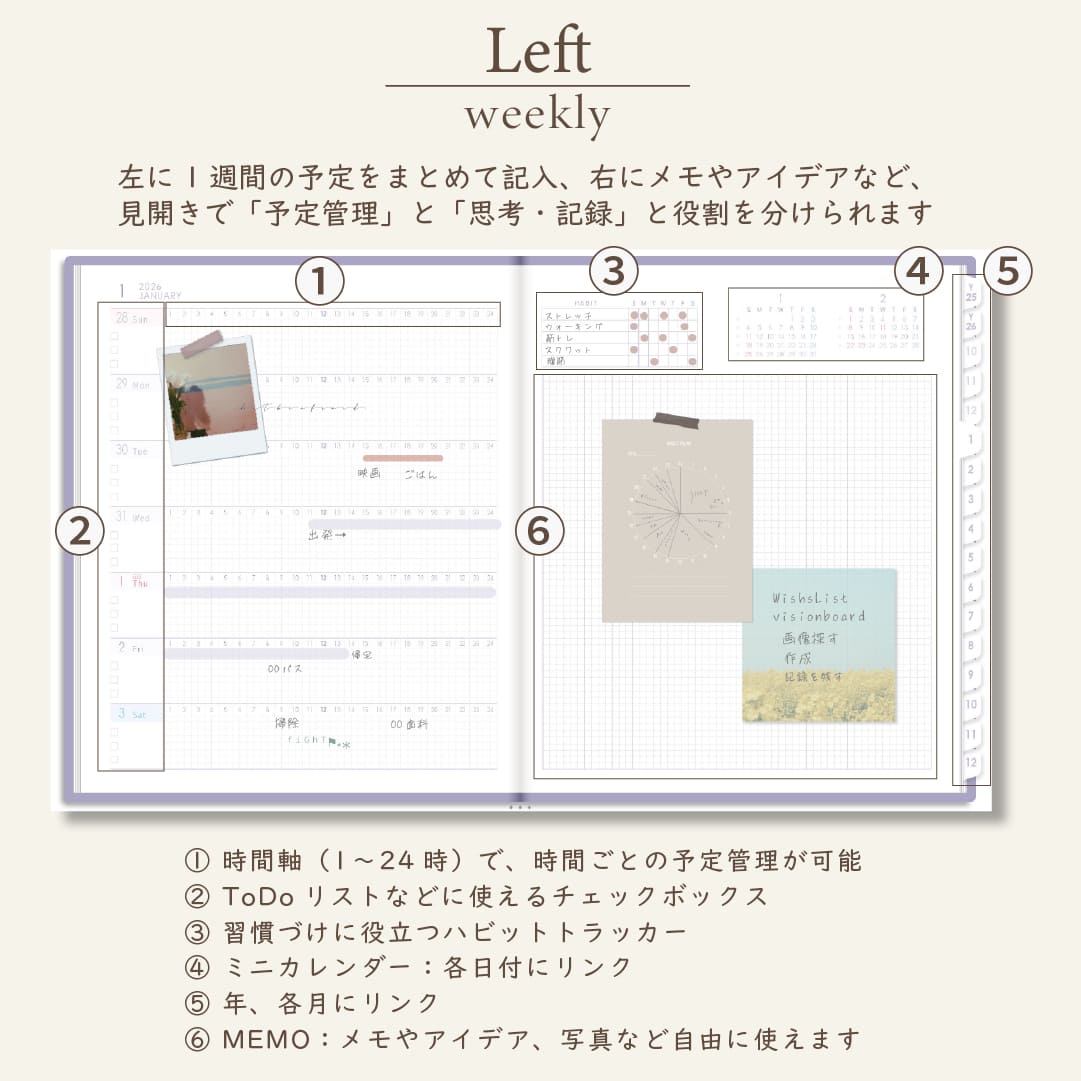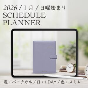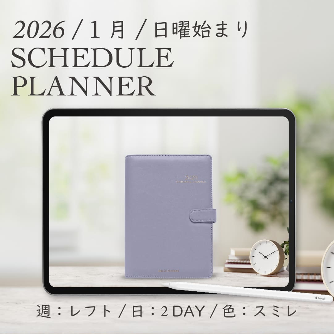 2026年1月始まりスケジュールプランナー[日曜始まり/週:レフト/日:2DAY/色:スミレ]