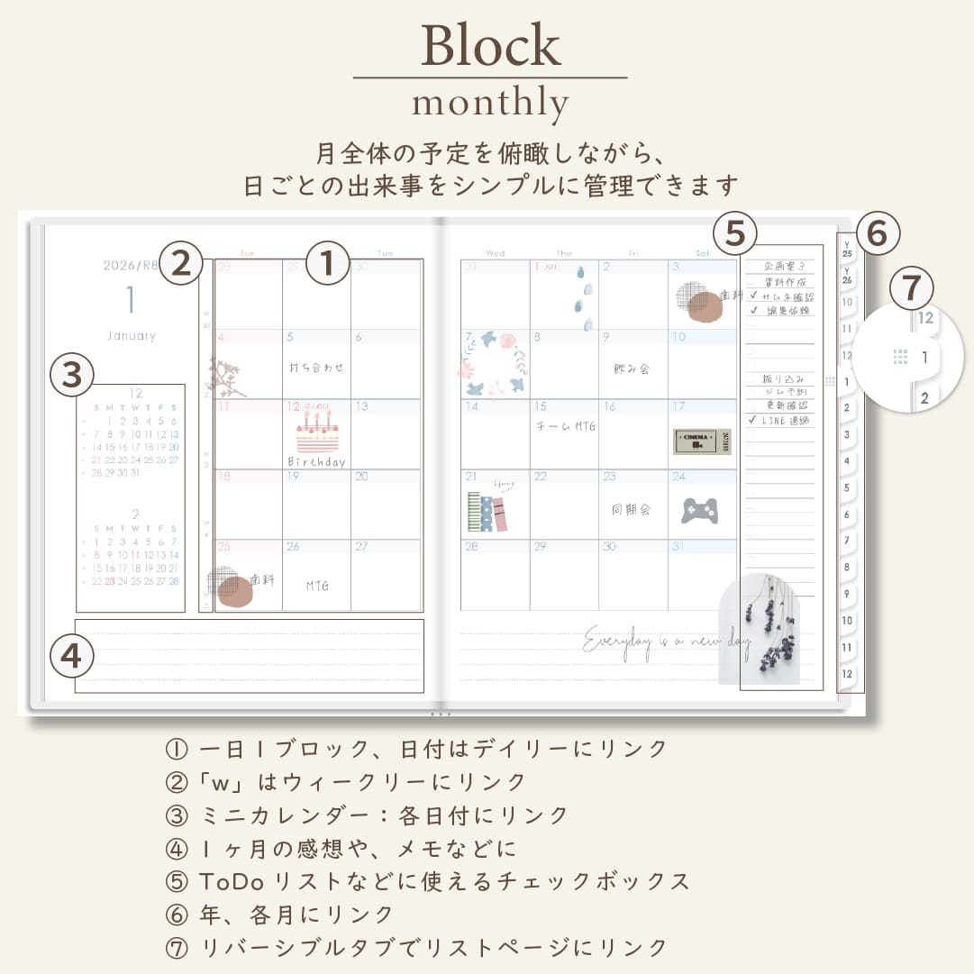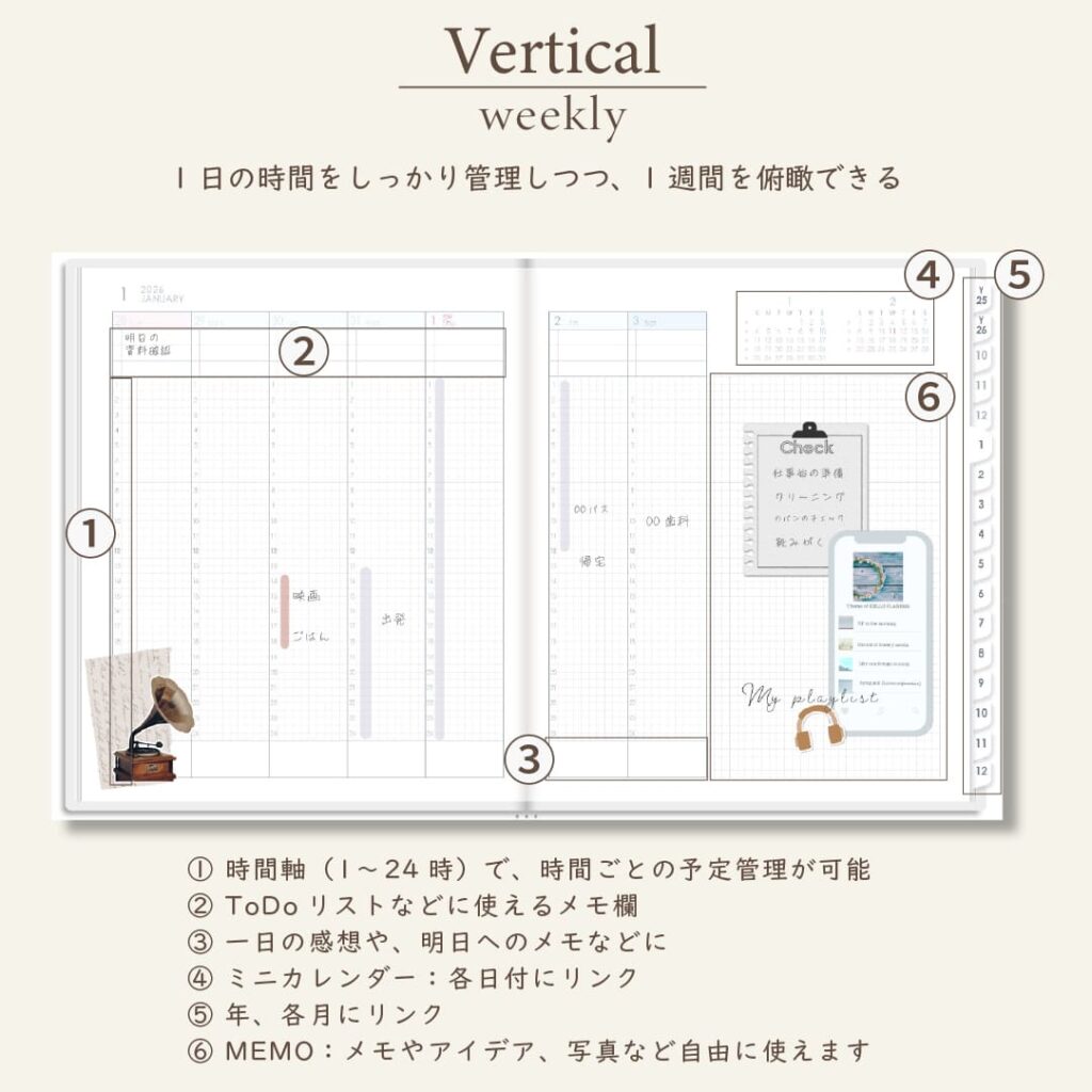 2026年1月始まりスケジュールプランナー[日曜始まり/週:バーチカル/日:1DAY/色:スノー]