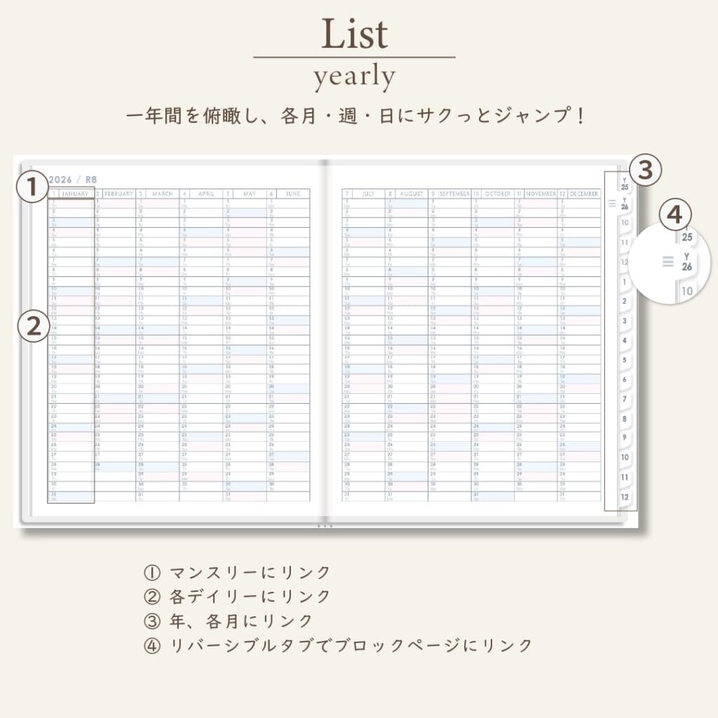 iPadのノートアプリで使うデジタルプランナー。初めての方にも使いやすい便利なハイパーリンクと多彩なレイアウト。