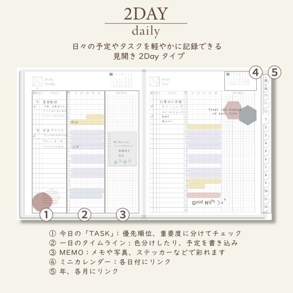 2026年1月始まりスケジュールプランナー[日曜始まり/週:バーチカル/日:2DAY/色:スノー]