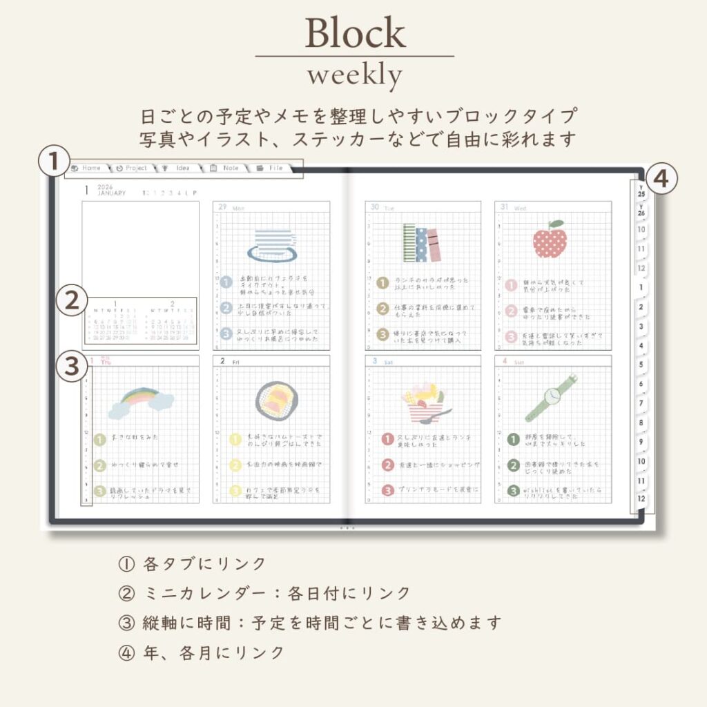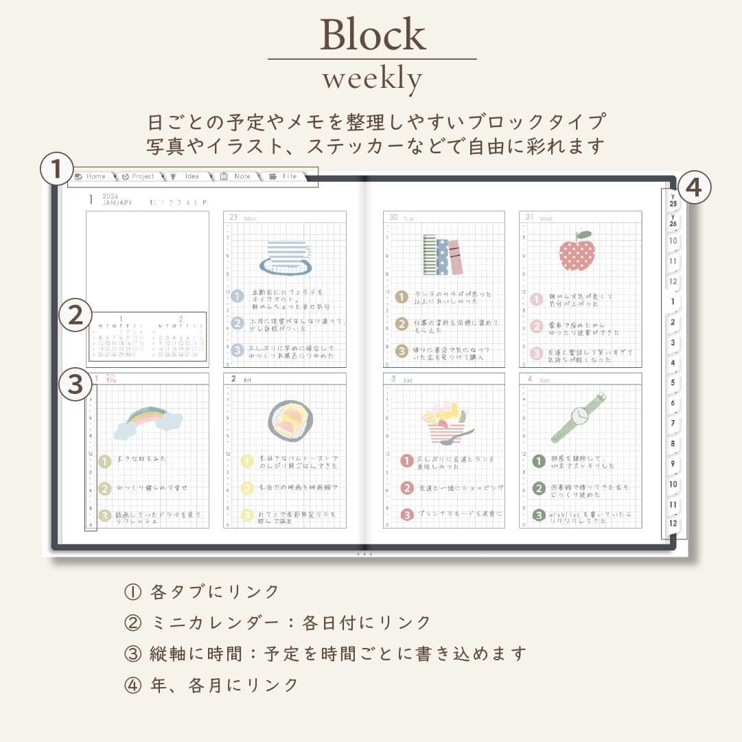 - 週間ページ:Block/Left/Vertical