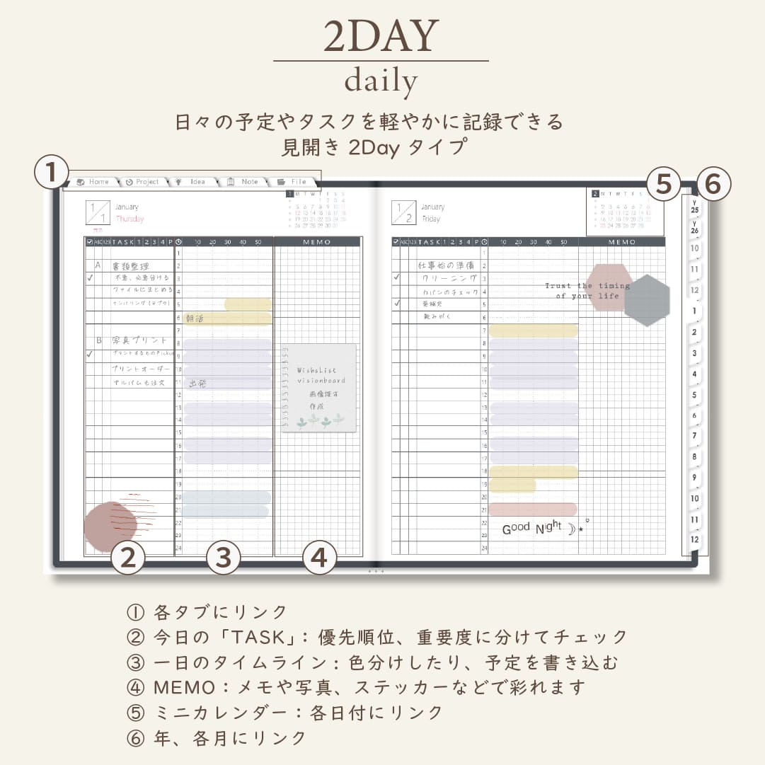 2026年1月始まりしごと手帳[月曜始まり/週:ブロック/日:2DAY/色:モノ]