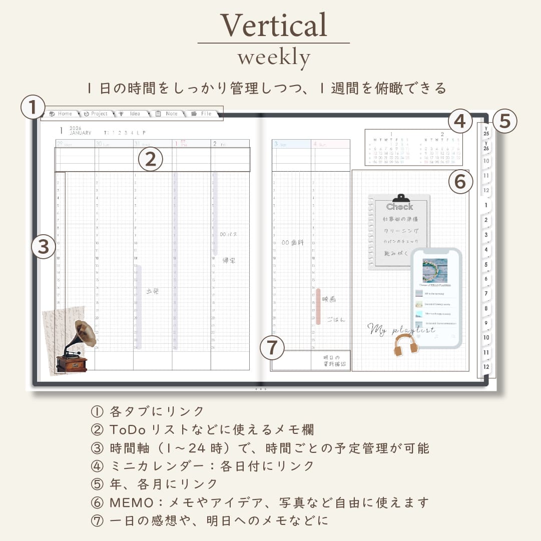 - 週間ページ:Block/Left/Vertical