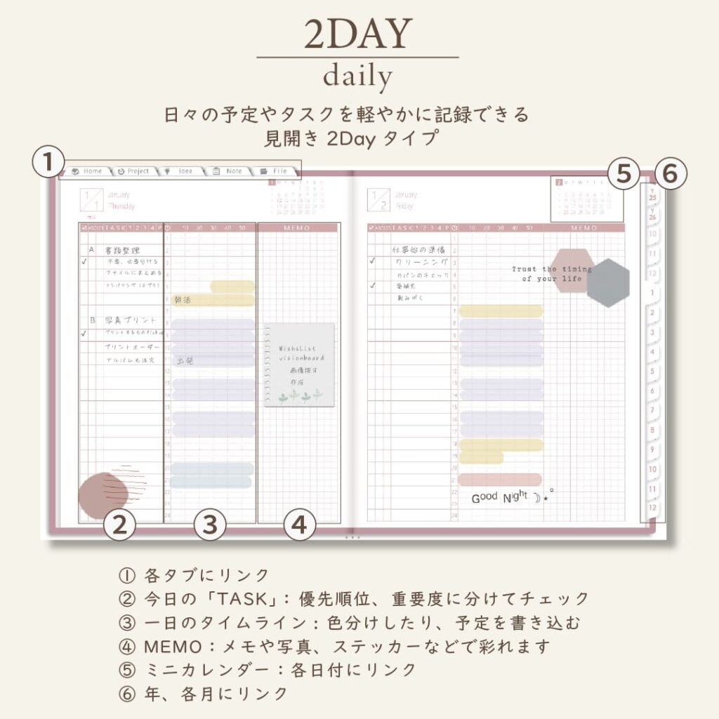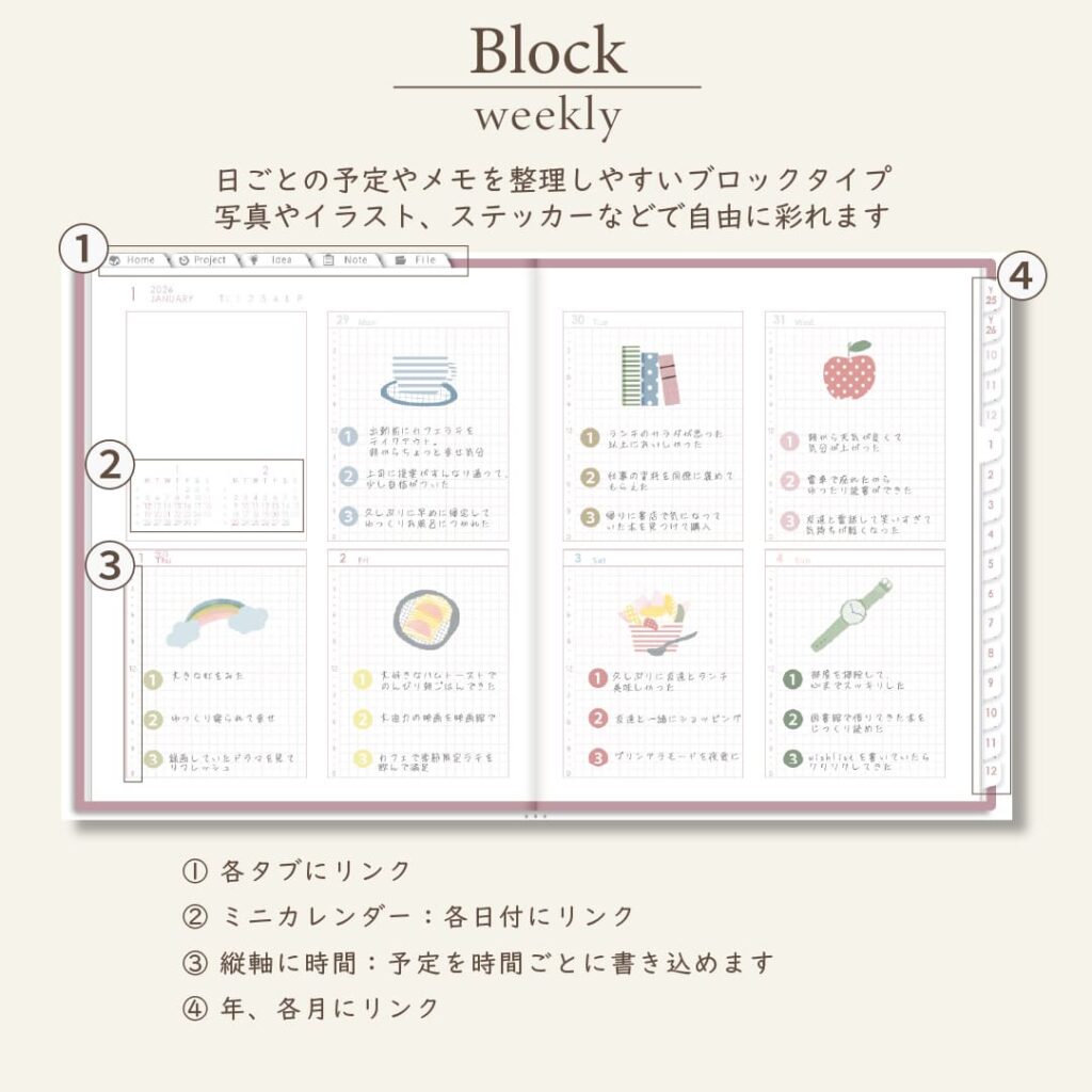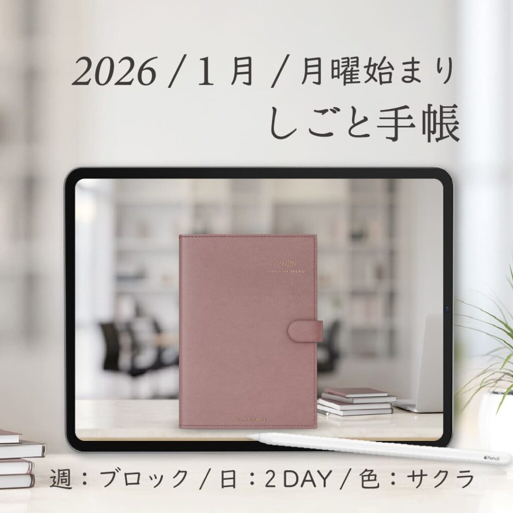 2026年1月始まりしごと手帳[月曜始まり/週:ブロック/日:2DAY/色:サクラ]