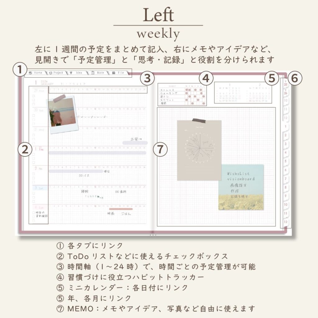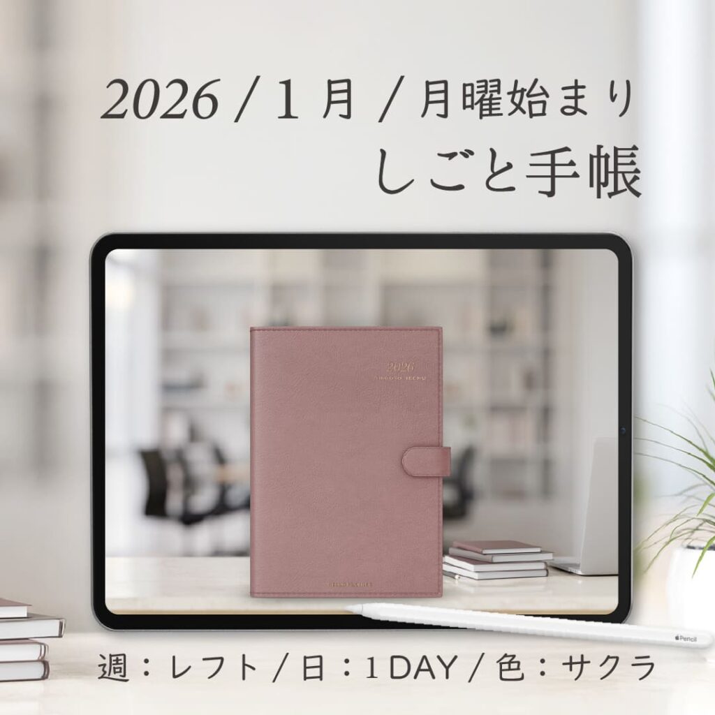 2026年1月始まりしごと手帳[月曜始まり/週:レフト/日:1DAY/色:サクラ]