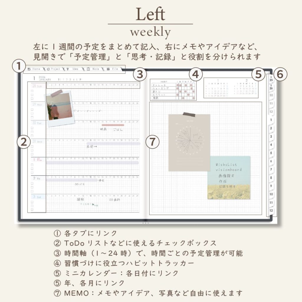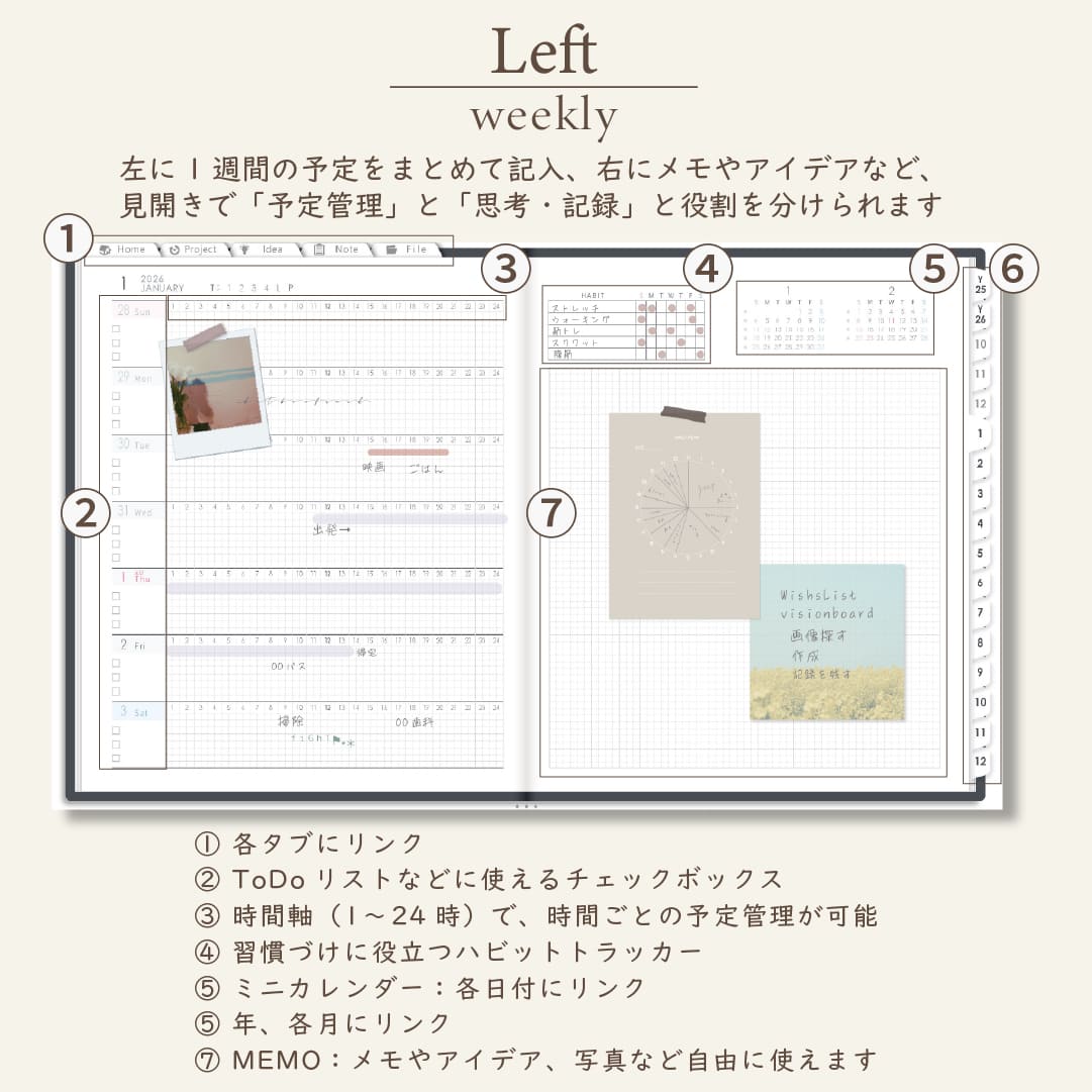 2026年1月始まりしごと手帳[日曜始まり/週:レフト/日:1DAY/色:モノ]