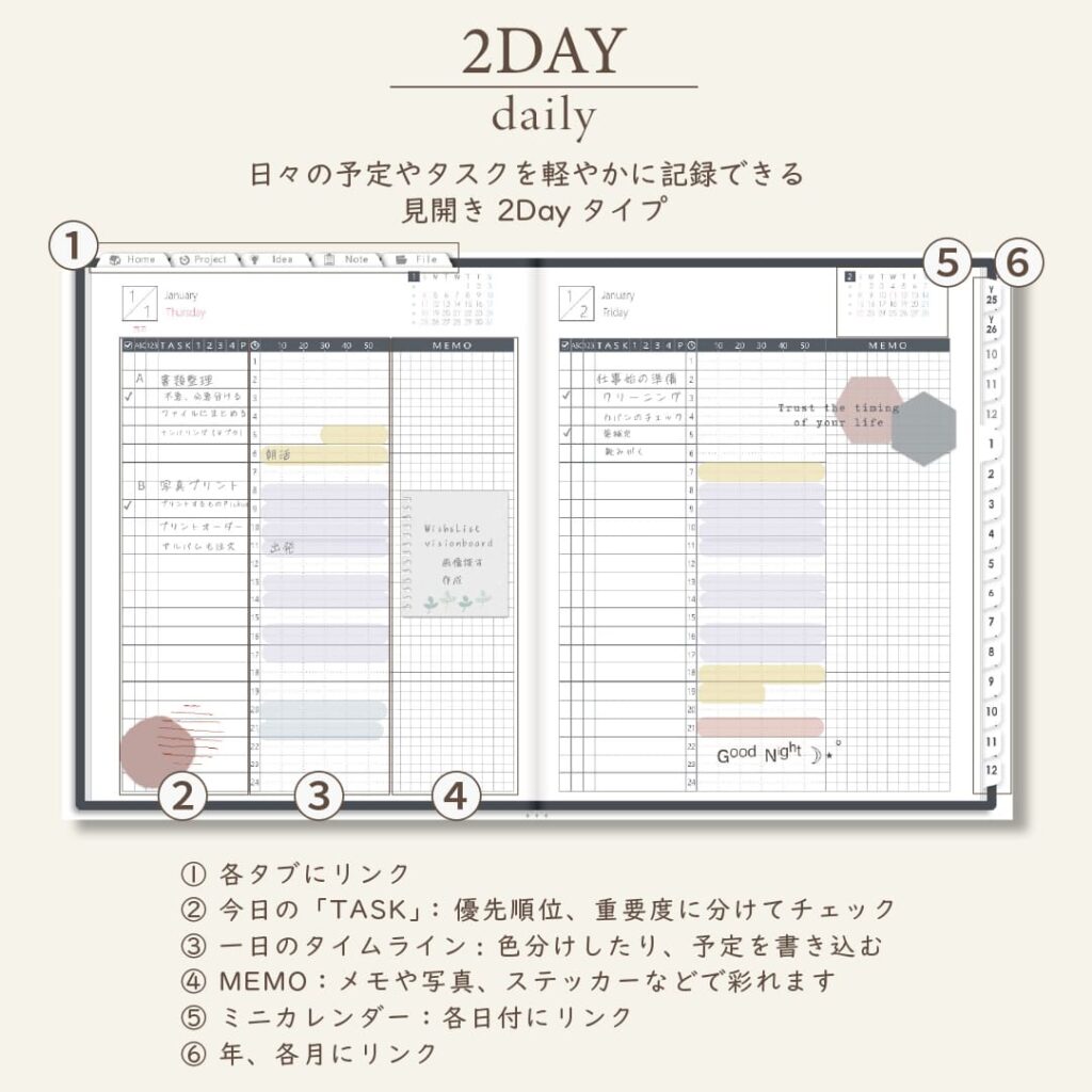 2026年1月始まりしごと手帳[日曜始まり/週:レフト/日:2DAY/色:モノ]