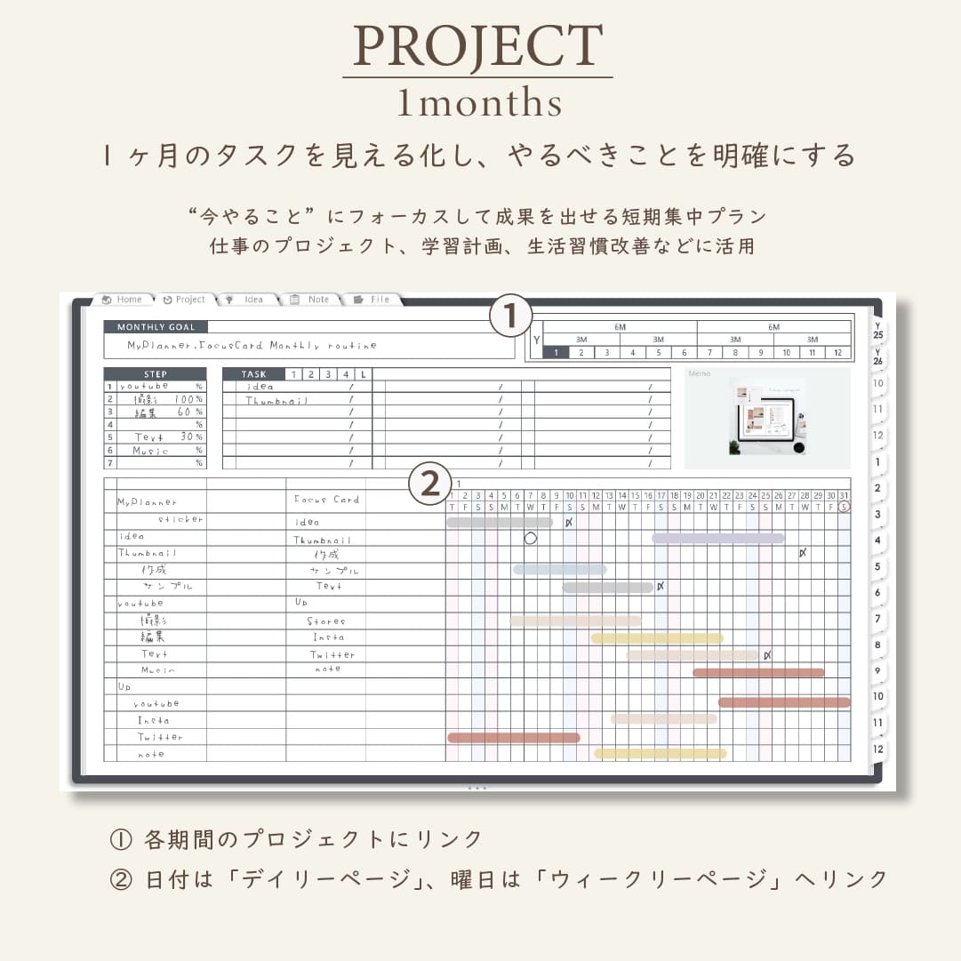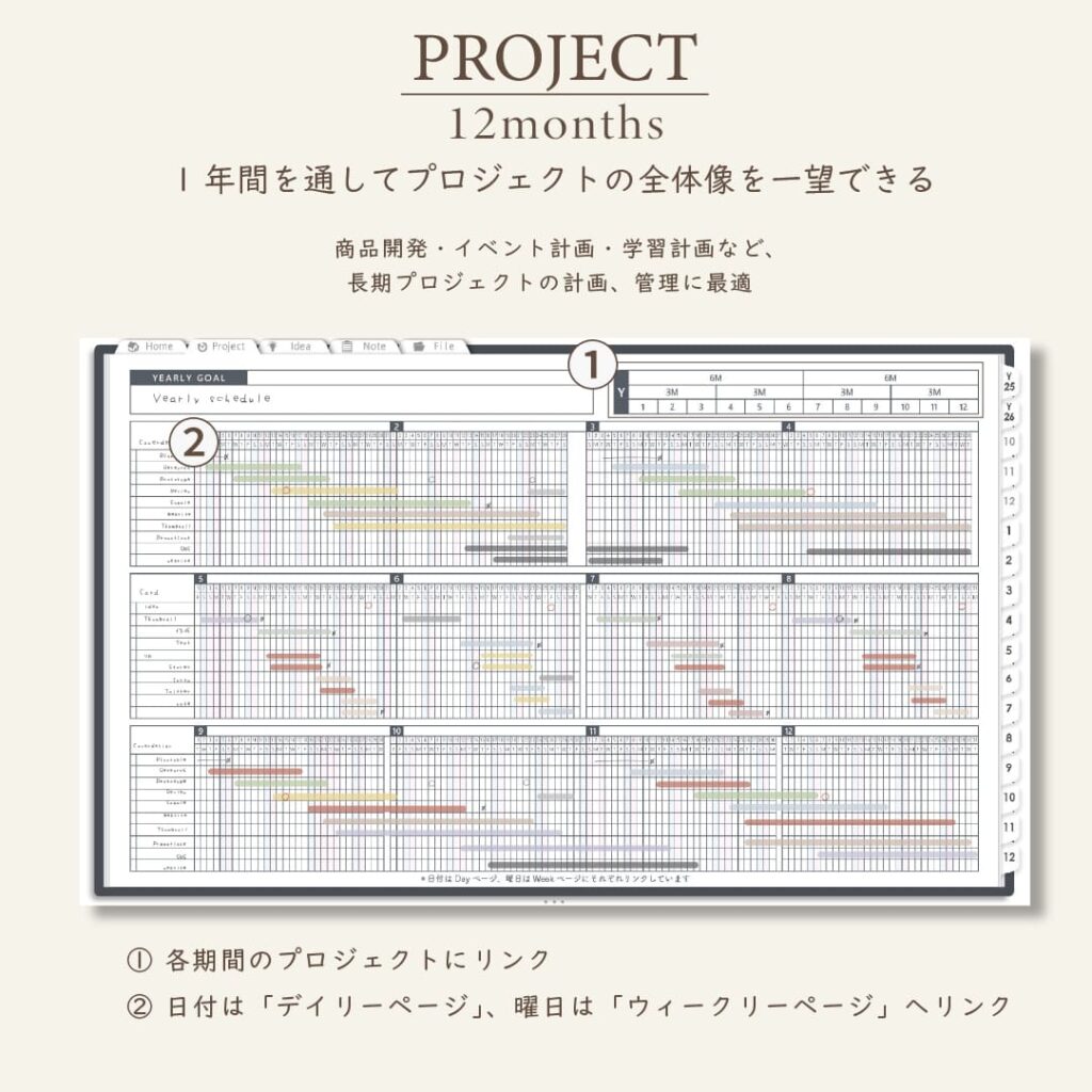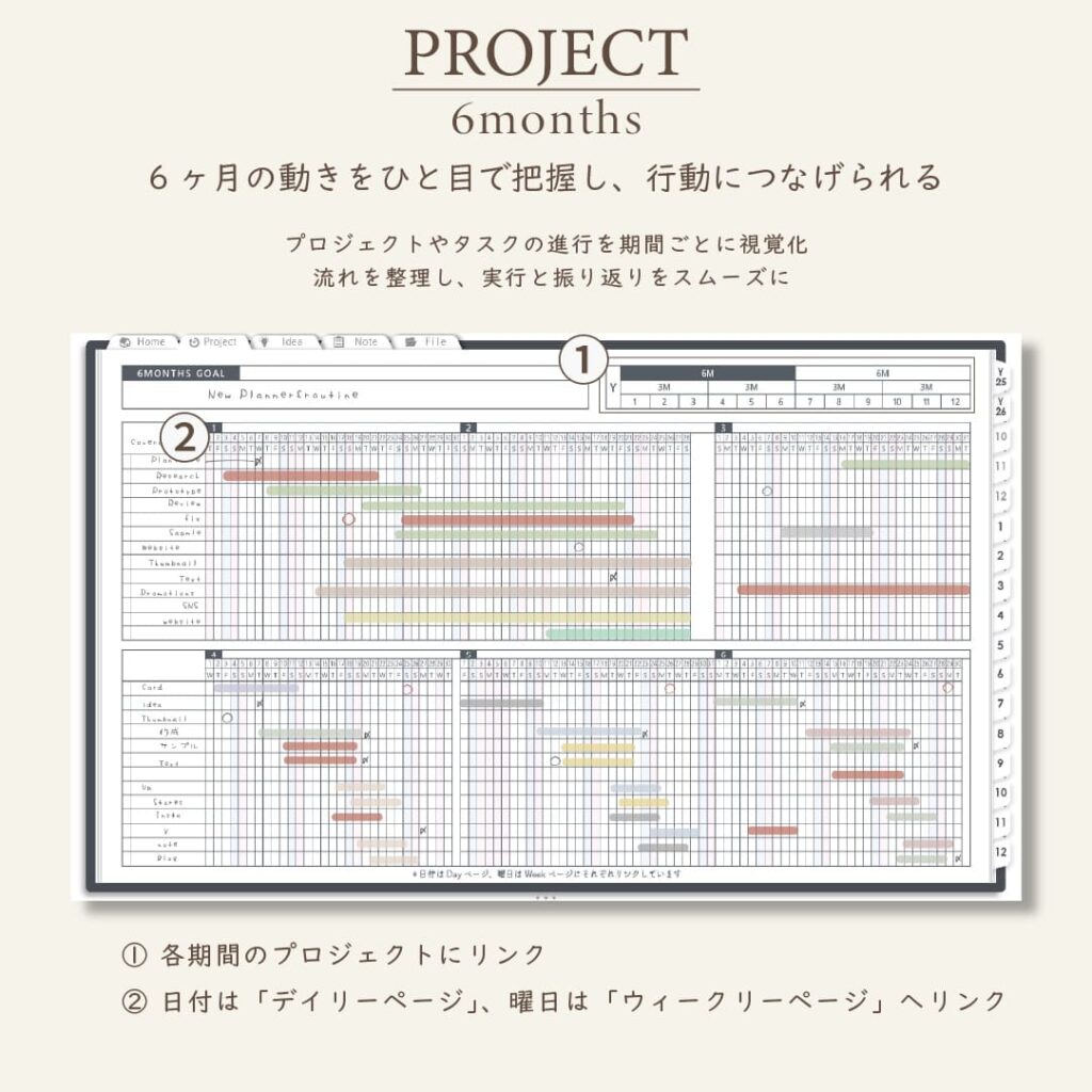 ・1年/半年/3ヶ月/1ヶ月を見渡せるガントチャート