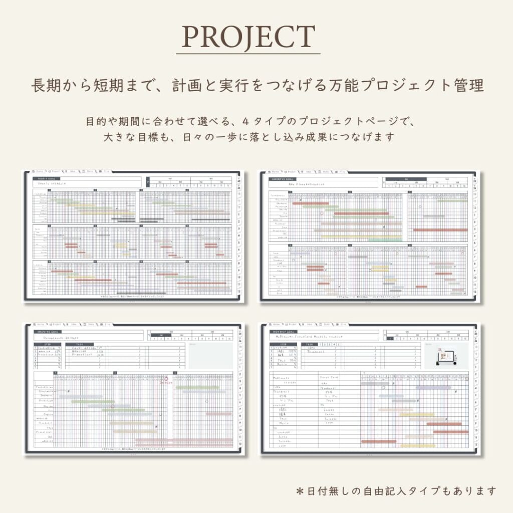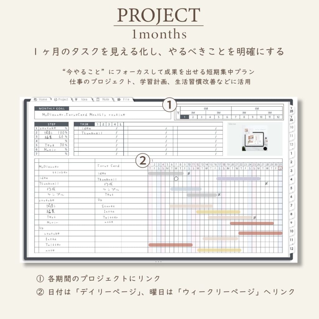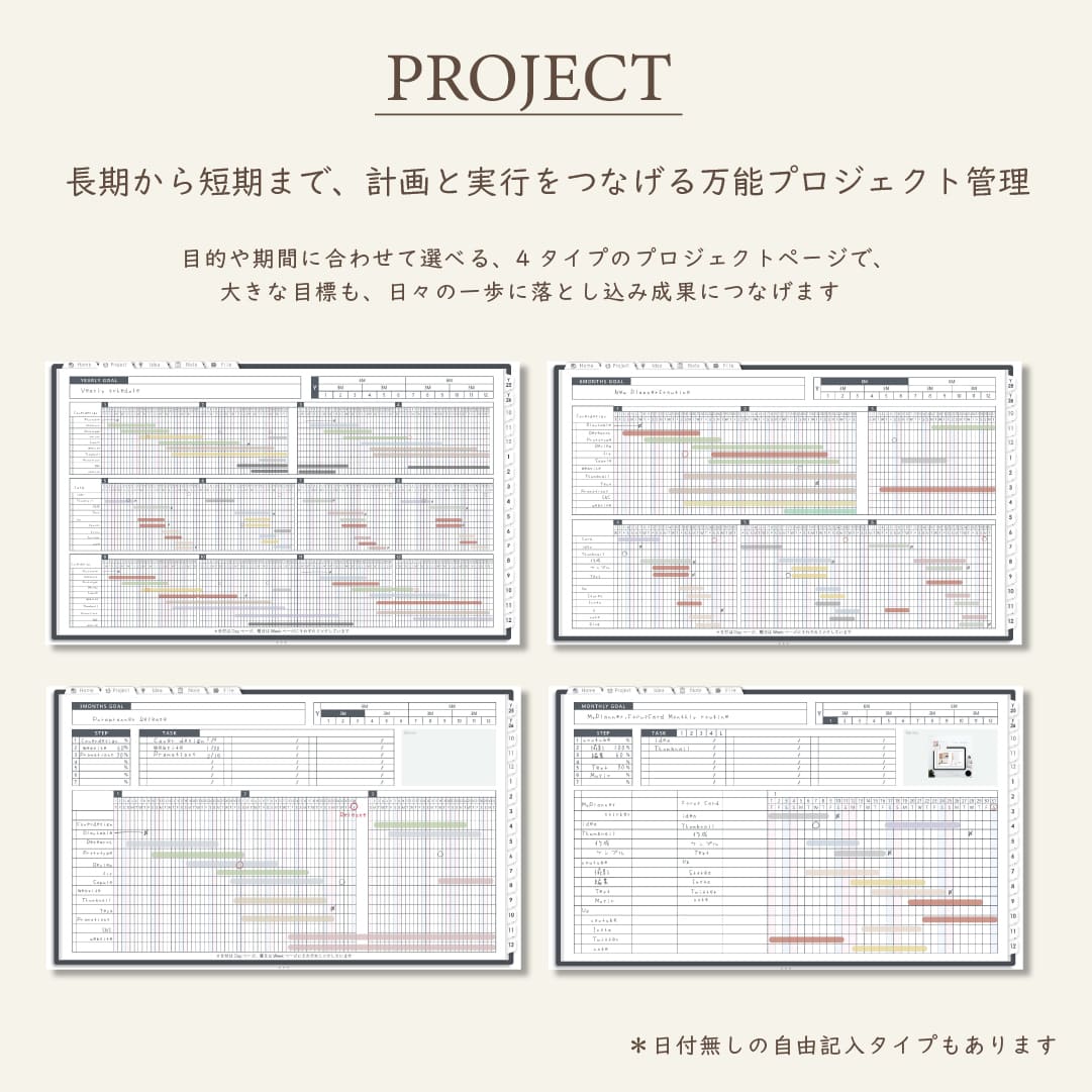 ・1年/半年/3ヶ月/1ヶ月を見渡せるガントチャート