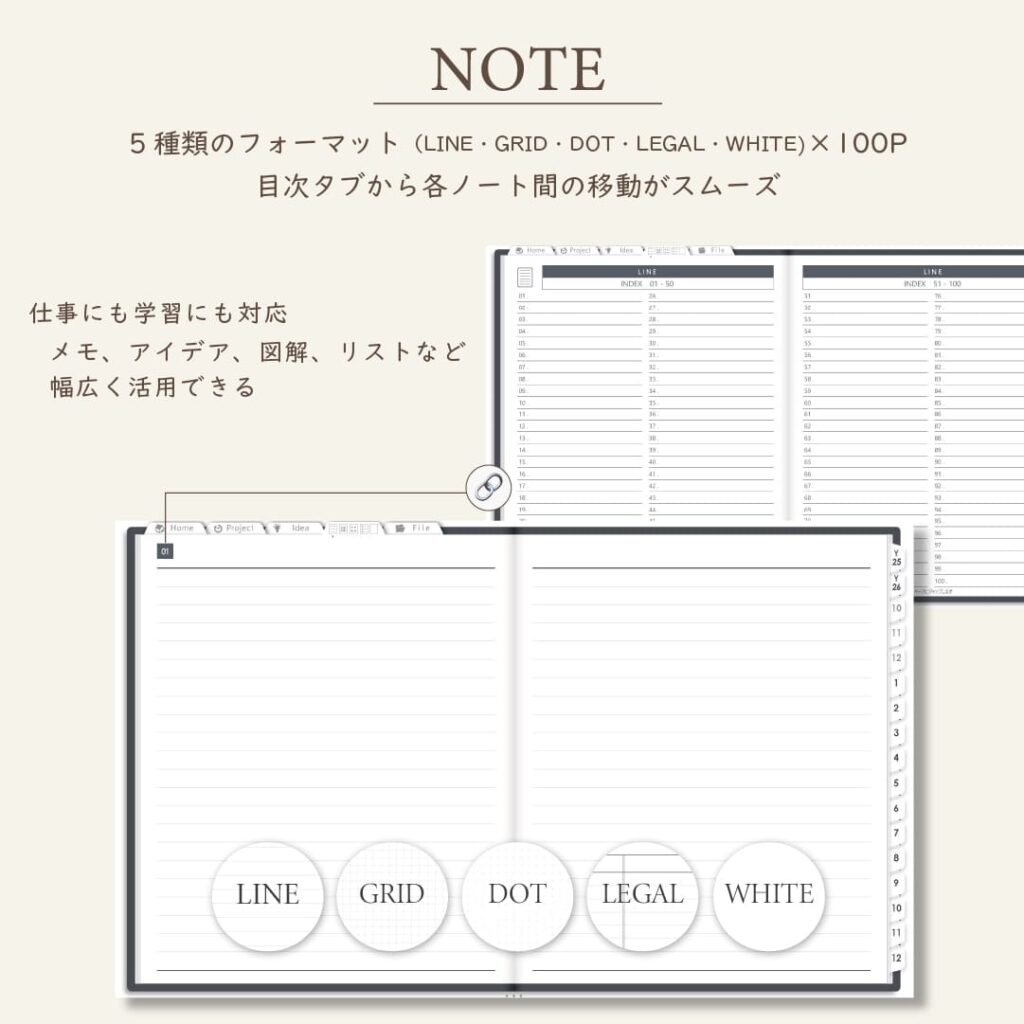 ・ファイル5種類×70Pで資料や画像も整理OK